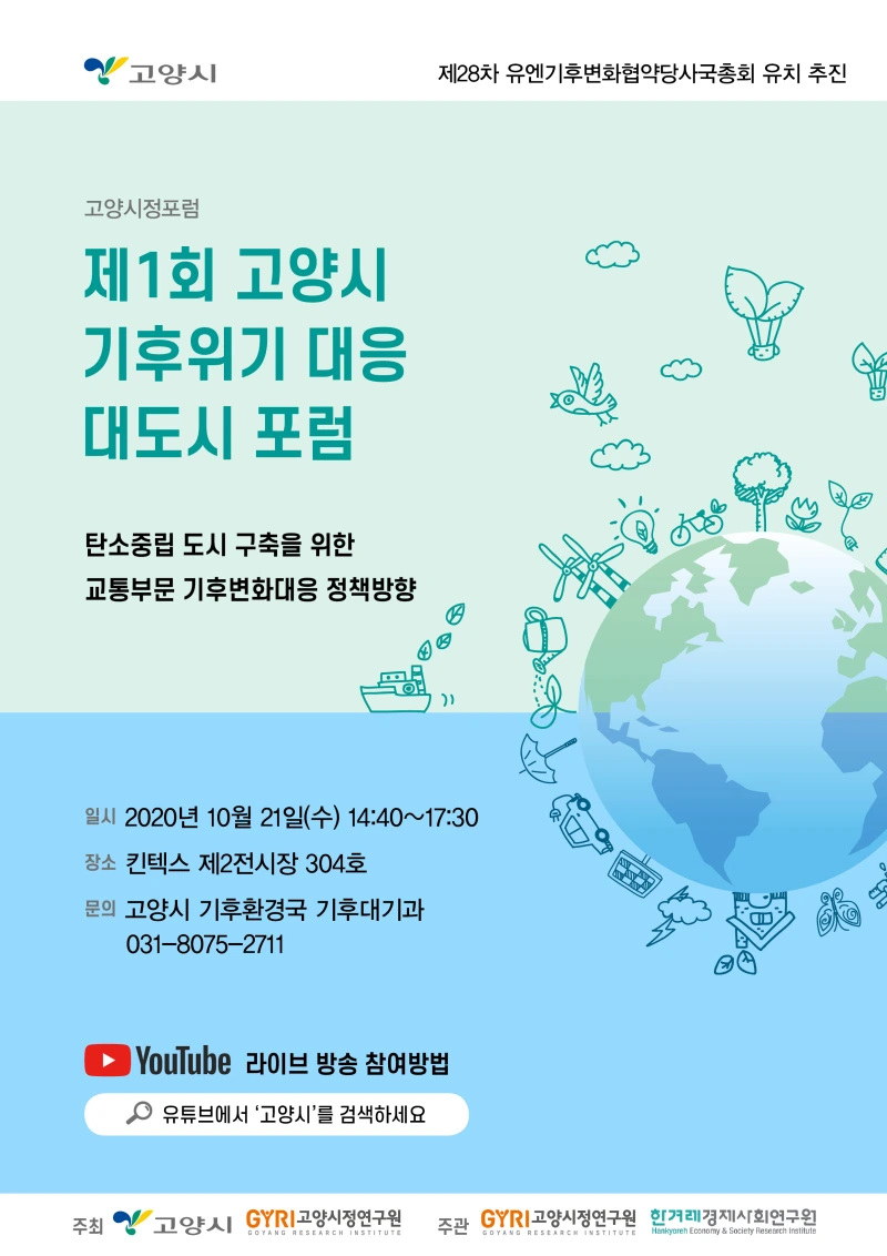 고양시와 고양시정연구원이 주최하는 <제1회 고양시 기후위기 대응 대도시 포럼> 이 열렸습니다.