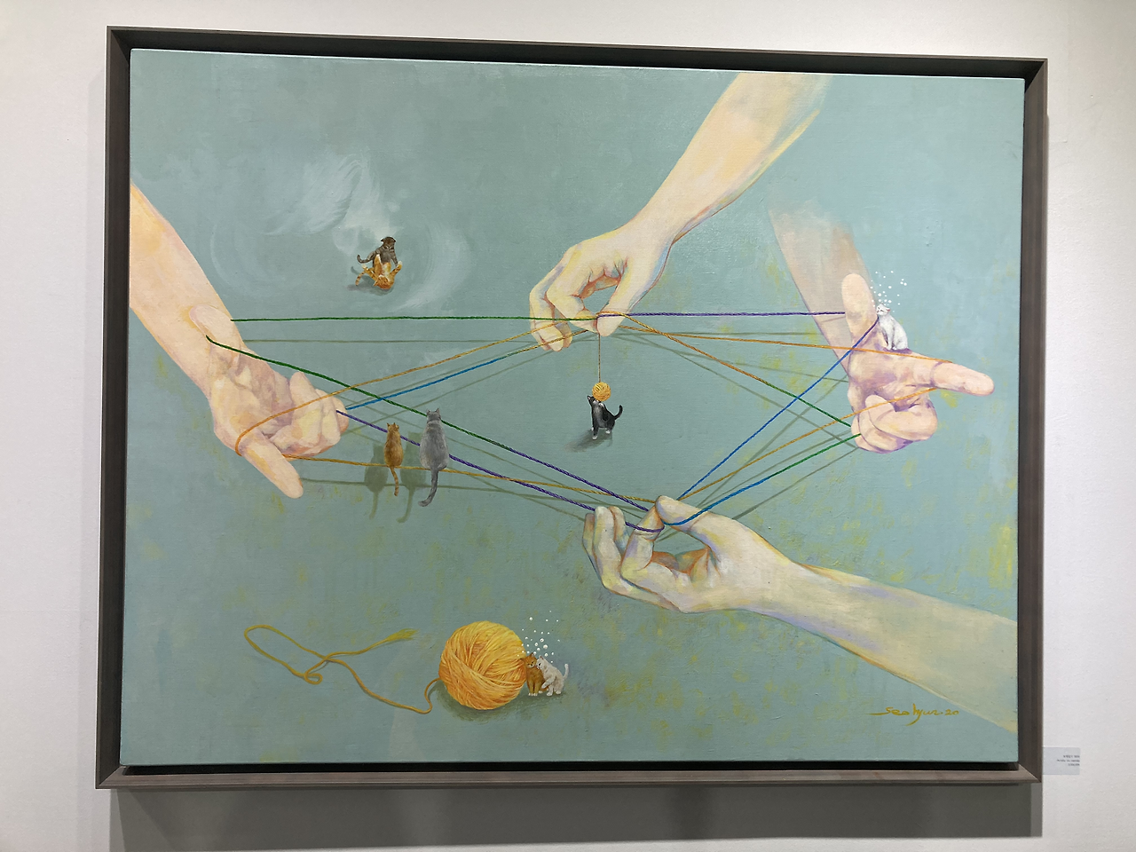 "Be my self" 양서현 작가의 <실>시리즈 작품의 가장 결과론적인 메세지를 던져주는 작품이라 생각했다. 결국엔 우리들의 연대를 통해 하트(heart)를 완성하기 위해선 먼저 내 자신이 건강해야 한다. 내 자신의 건강은 내가 주체적인 나로 살게 될때 지킬수 있다. 결국 건강한 사회는 타인에 의해 조정되는 삶을 사는 것이 아니라 오롯이 '나답게!' 내자신으로 살때 만들어지는 것이다.