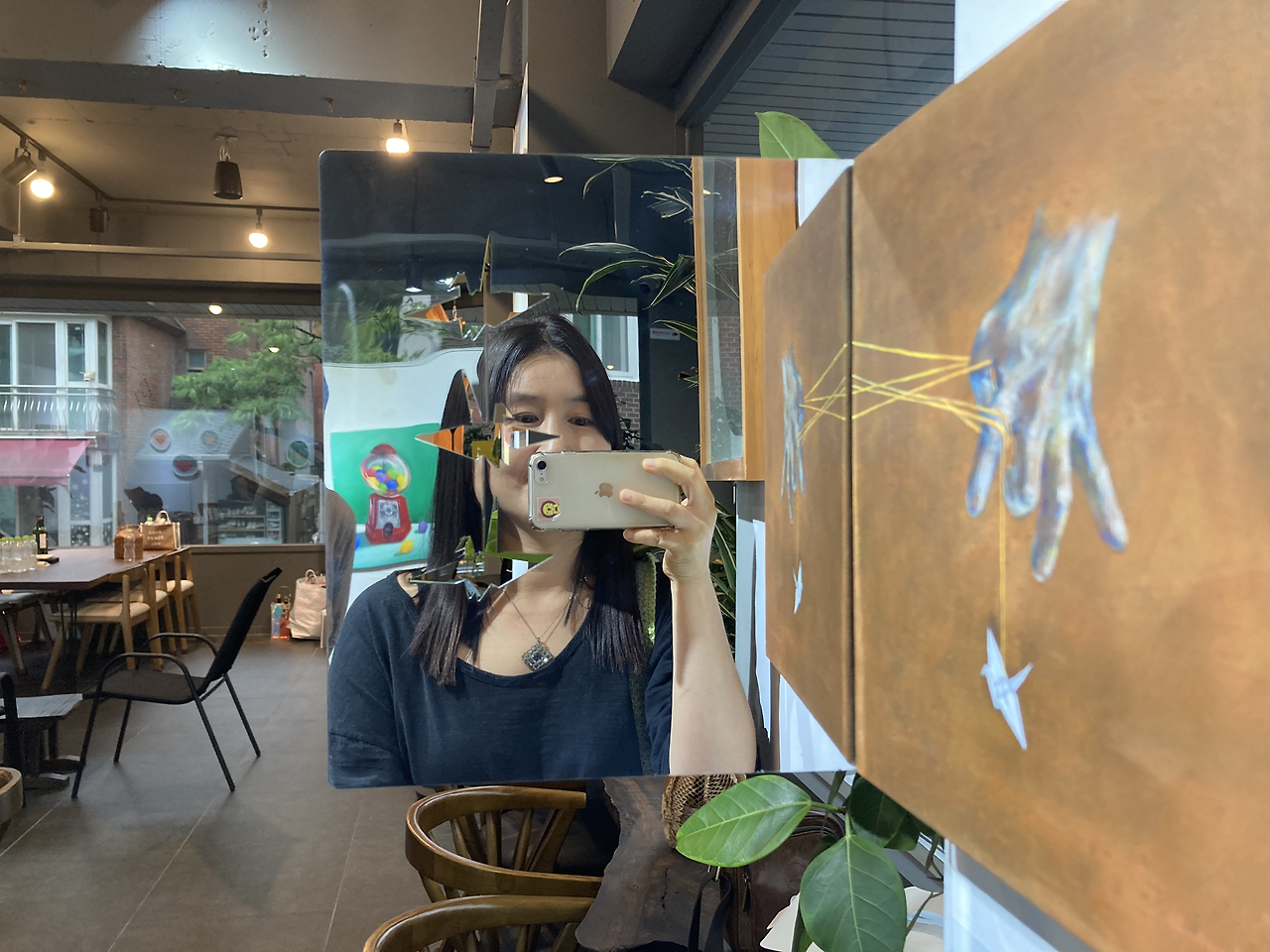 하나의 그림이 거울에 비춰지면서 완성되는 설치 미술이다. 공정이 까다로운 작품이라고 했다. 사람도 혼자보다 함께 있을때 완성미를 이룬다. 현대인들은 그것을 알면서도 사람으로 인한 상처가 고통스럽고 싫어서 사람의 무리로부터 벗어나고 싶어 한다. 그럼에도 사람의 관계가 너무 슬프고 불행하다면 잠시 벗어나 있는것도 나쁘지 않다고 생각한다. 거울 작품은 반쪽만으로도 충분히 아름다울 수 있기때문이다. 홀로 선다는 것은 무엇인가. 더 단단하고 흔들리지 않는 솟대와 같은 것이다. 그 단단하고 의연함을 얻기 위해서 얼마나 많은 학습의 과정이 필요했을까를 생각하면 그 모습이, 그 형태가 초라하게 보일리 없다. 아름답지 않을 수 없다. 무리속에 당당히 홀로 선 솟대처럼, 홀로있어도 아름답지만 함께 있을땐 더욱 찬란하고 단단하게 빛날수 있는 그런 우리가 되어야 한다.