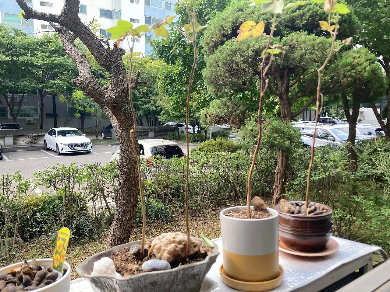 올봄에는 언니네 텃밭에서 목화씨를 받아왔다. 우리는 커다란 목화 나무를 상상하며 희망을 품었다. 목화씨는 사흘 만에 발아하여 떡잎을 냈다. 화분에 옮겨 심어 베란다 밖으로난 화분대에 두었다. 여름을 나는 동안 벌레가 목화잎을 모두 뜯어먹었다. 당연 초보 식집사는 알도리가 없었다. 목화 나무가 살아남기 힘들겠다 생각했다. 그래도 물은 열심히 주었더니 목화 나무의 맨 끝에서 새 잎이 다시 피어나 생명을 이어가고 있다. 또 얼마 전에는 국화 화분 3개를 들이고 지인에게 장미 허브와 나비란 화분과 콜레우스, 만손초 화초를 분양받았다. 나도 우리 집 아보카도 화분 하나를 지인에게 선물했다. 자식을 떼어 놓는 것 같았다. '내새끼 가서 사랑받고 잘 살아….’ 이렇게 어느 사이 남편과 나는 초보 식집사가 되어 갔다.