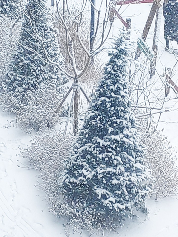 눈이 내린다. 하얀 눈이 소복소복 내린다. 사방이 아파트로 둘러싸인 동그란 놀이터는 마치 비밀 요새와 같다. 놀이터 주변의 나무들이 크리스마스트리를 닮았다. 나무 가지 층층이 에 하얀 눈이 소복이 내려와 덮이니 크리스마스 캐럴이 금방이라도 울려 퍼질 것 만 같다. 얼마 전 지나간 크리스마스가 다시 come back이라도 했나? 하얀 트리까지 완성이 되니 크리스마스 카드와 연하장에나 있을 법한 고요한 마을 풍경이 연상된다. 차갑고 맑은 햇살이 눈 덮인 교회 지붕 위를 반짝반짝 걷고 있을 것 만 같은.