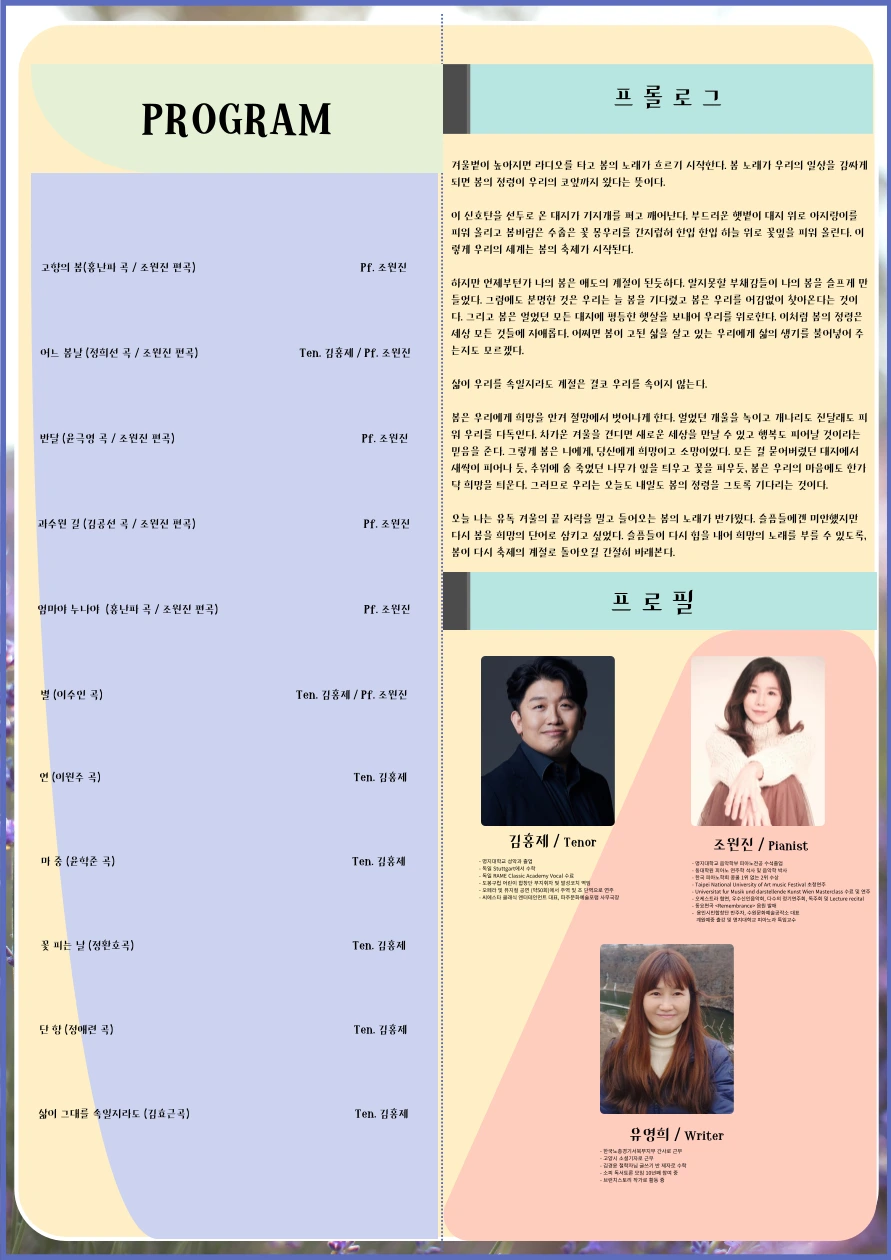 오늘 나는 유독 겨울의 끝 자락을 밀고 들어오는 봄의 노래가 반가웠다. 슬픔들에겐 미안했지만 다시 봄을 희망의 단어로 삼키고 싶었다. 슬픔들이 다시 힘을 내어 희망의 노래를 부를 수 있도록, 봄이 다시 축제의 계절로 돌아오길 간절히 바래본다.