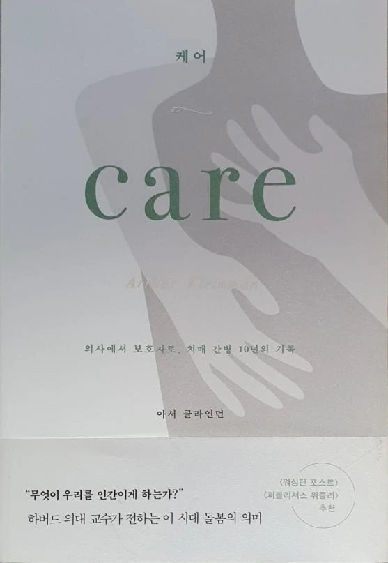 아서는 조앤과의 따뜻한 관계 안에서 기술보다 인간을 중시하는 의료학과 인류학을 연구하는데 더 몰두할 수 있었다. 그러나 안타깝게도 그의 아내 조앤이 55세에 치매에 걸렸다. 이 책은 정신의학 의사 아서가 치매 환자 아내를 10년간 간병한 기록인 동시에 그의 자서전이다. 그의 간병 경험은 그가 돌봄 분야의 전문성이 짙은 이 책에 자서전의 색깔을 입힌 이유로 보인다. 돌봄은 우리의 삶의 과정을 빼놓고 이야기할 수 없다. 인간은 태어나면서부터 죽음을 맞는 날까지 돌봄의 영역에서 벗어날 수 없는 홀로 설 수 없는 존재이기 때문이다.