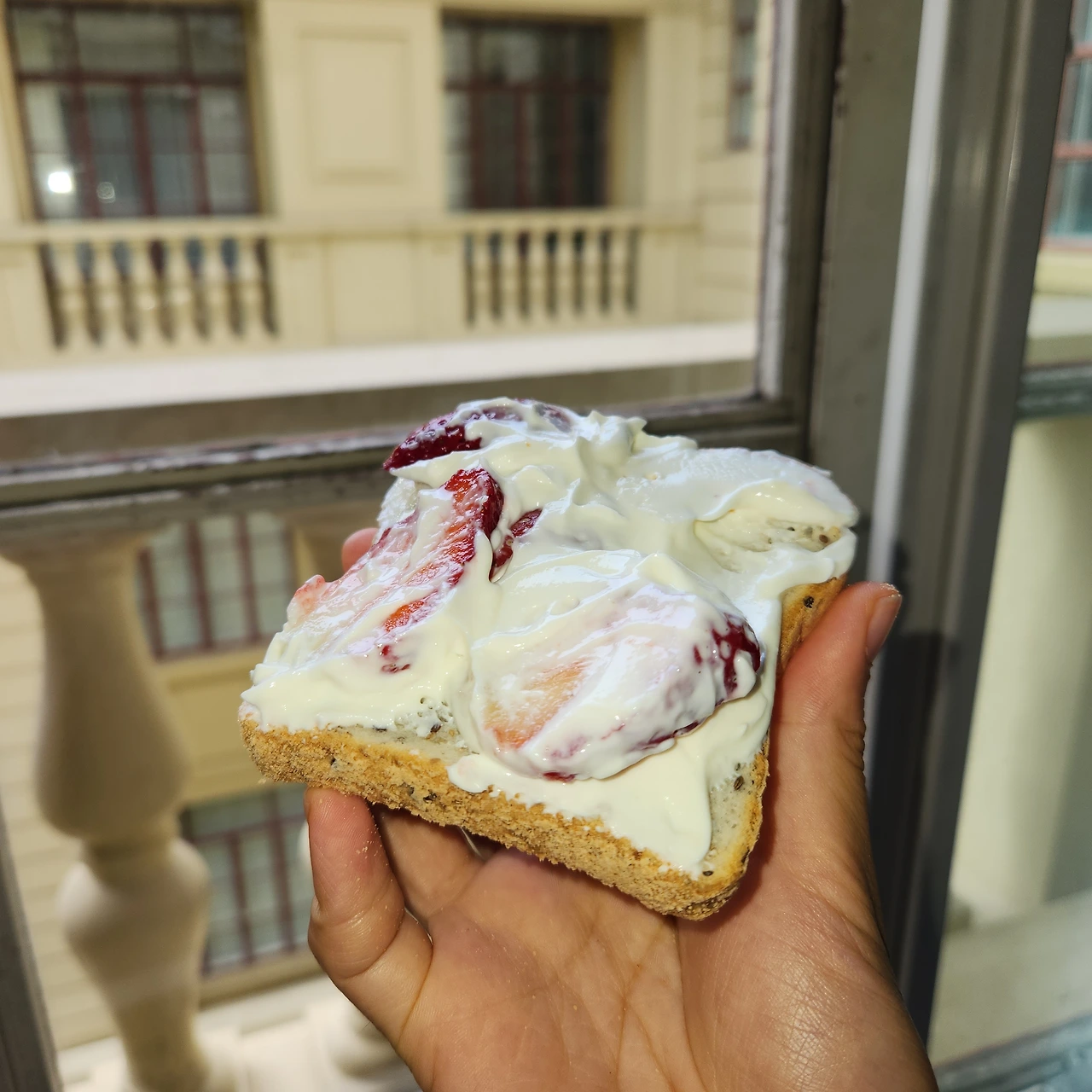점심 먹으려고 토스트 기를 돌리는데 갑자기 화재경보기가 울렸다. 난 내가 잘못한 건 줄 알고 굉장히 당황했다. 다른 방도 난리인가 싶어 나왔는데, 이런, 열쇠와 핸드폰을 방에 두고 방문이 잠겨버렸다. 당황은 잠시다. 아래층에 내려가서 키를 두고방 밖으로 나와버렸다고 했다. 지배인 느낌이 낭낭한 아저씨는 친절하게 키를 하나 더 내주었다. 화재경보기는 잘못 울린 거 같은데 혹시 불안하면 로비에 좀 있다 가라고도 한다. 음 괜찮아요. 전 빵을 먹으러 가야 하거든요. 그리고 내 새끼 같은 아이패드랑 일기장을 두고 혼자서만 안위를 챙길 수 없습니다. 그렇게 한바탕 소동으로 혼란스러웠지만 금방 정신을 차리고 브런치를 즐겼다.