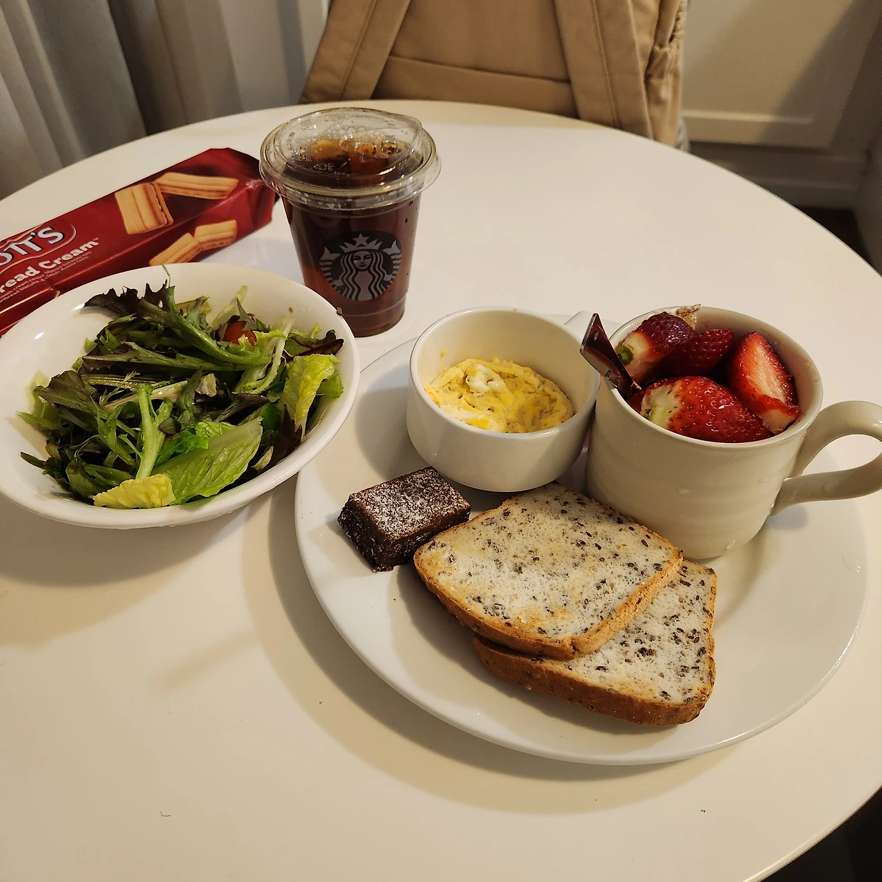 저녁에는 장을 봤다. 호주 온 지 거의 열흘 가까이 되어서야 장을 제대로 봐서 먹는다. 그전에는 샐러드 키트나 길거리 음식으로 식사를 때웠다면 오늘은 호주 사람들이 아침 식사 먹을거리를 샀다. 그리스식 샐러드 별로 안 좋아하는데 실수로 사버렸다. 어쩐지 가격이 너무 비싸더라니. 비싼 이유였을 올리브와 큐브 치즈를 싫어해서 모두 버려야 했다. 한 5일은 먹을 만큼 푸짐하게 샀더니 40불이 나왔다. 카페에서 한 끼 대충 먹으면 20불이 나오는데. 역시 직접 해 먹는 게 최고다. 햄버거나 피자 같은 음식 보단 장 봐서 해 먹는 게 호주스러운 식사 아닐까? 그래놀라에 요구르트, 곡물빵에 베이비 당근까지 야무지게 씹어먹었다. 나름 만족스럽게 식사도 했다.