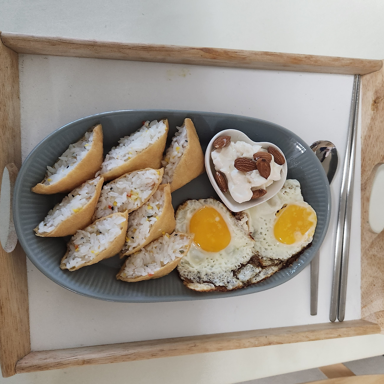 삼식이는 집에서 쫓아내야 한다는데 석희는 삼식이를 책임졌다. 아침부터 식사를 예쁘게 만들어줬다. 평소에 아침도 잘 안 챙겨 먹는다는 사람이 부지런히 식사를 차린다. 전에 유부초밥을 친구에게 한번 만들어서 대접했다가 만들기가 생각보다 어려워서 식겁했던 나는 또 한 번 고마움과 미안함이 몰려왔다. 직접 만든 그릭요거트도 쫀득하니 신기한 식감이었다. 아몬드도 좋아. 꿀도 뿌려주는 센스 좋아. 계란 두 개 구워서 하트 만들어 준 것도 좋아.