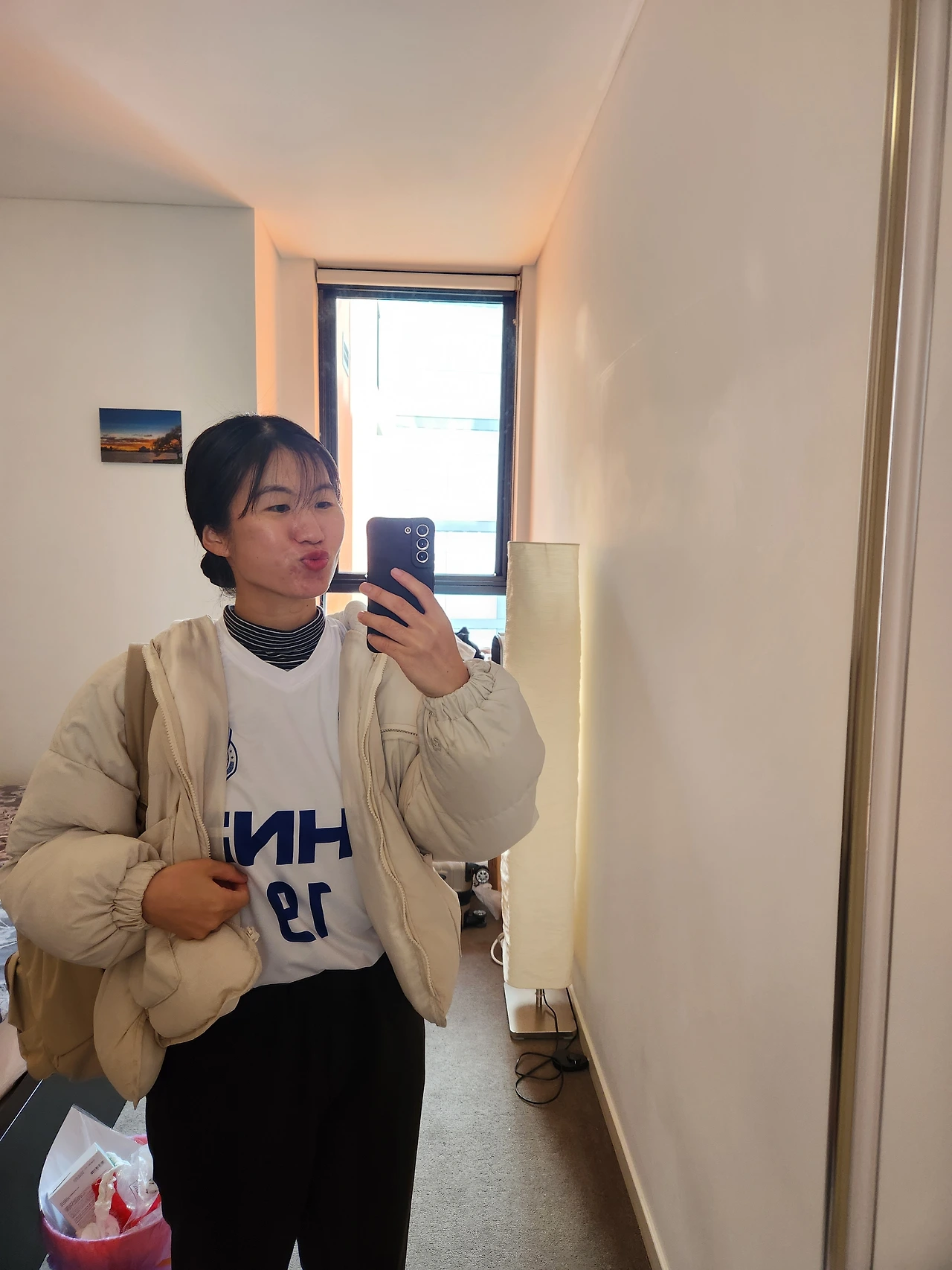 시드니 공항에서 우버를 타고 숙소로 왔다. 시드니에 도착해서 짐 푸니까 오후 12시 정도, 밥 먹으러 가기 전에 축구 여행 컨셉 맞춰서 이시호 선수님 유니폼을 입었다. 하얗고 예쁘다. 원래 주인장을 닮아서 예쁜 유니폼이다. 선수님들이 주신 유니폼을 한국 경기장에서 입기는 쑥스러운 감이 있어 잘 못 입는데 이렇게 외국 나와서는 자신감 있게 입었다. 뭔가 패피 같고(?) 기분 좋다. (패피가 뭔지 잘 모른다.) 아끼고 아끼는 내 귀여운 유니폼들. 이번 여행이 긴장되는 건 내가 평소에는 유니폼들을 굉장히 귀하게 여겨 밖에 잘 안 들고 다니는데 이번 여행에서 한 두벌도 아니고 10벌을 들고 왔기 때문이다. 그래도 글로 쓰면 이루어진다 하니 한번 써 본다. 나는 이 모든 유니폼들과 내 소중한 짐들과 함께 한국으로 안전히 돌아갈란다!