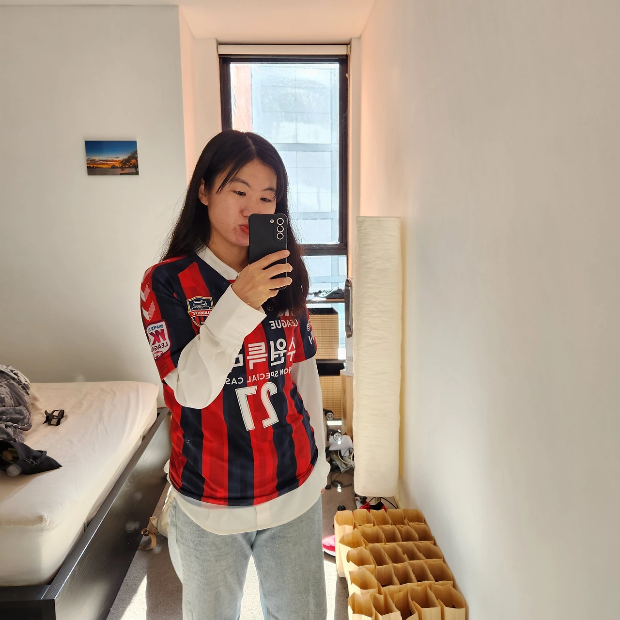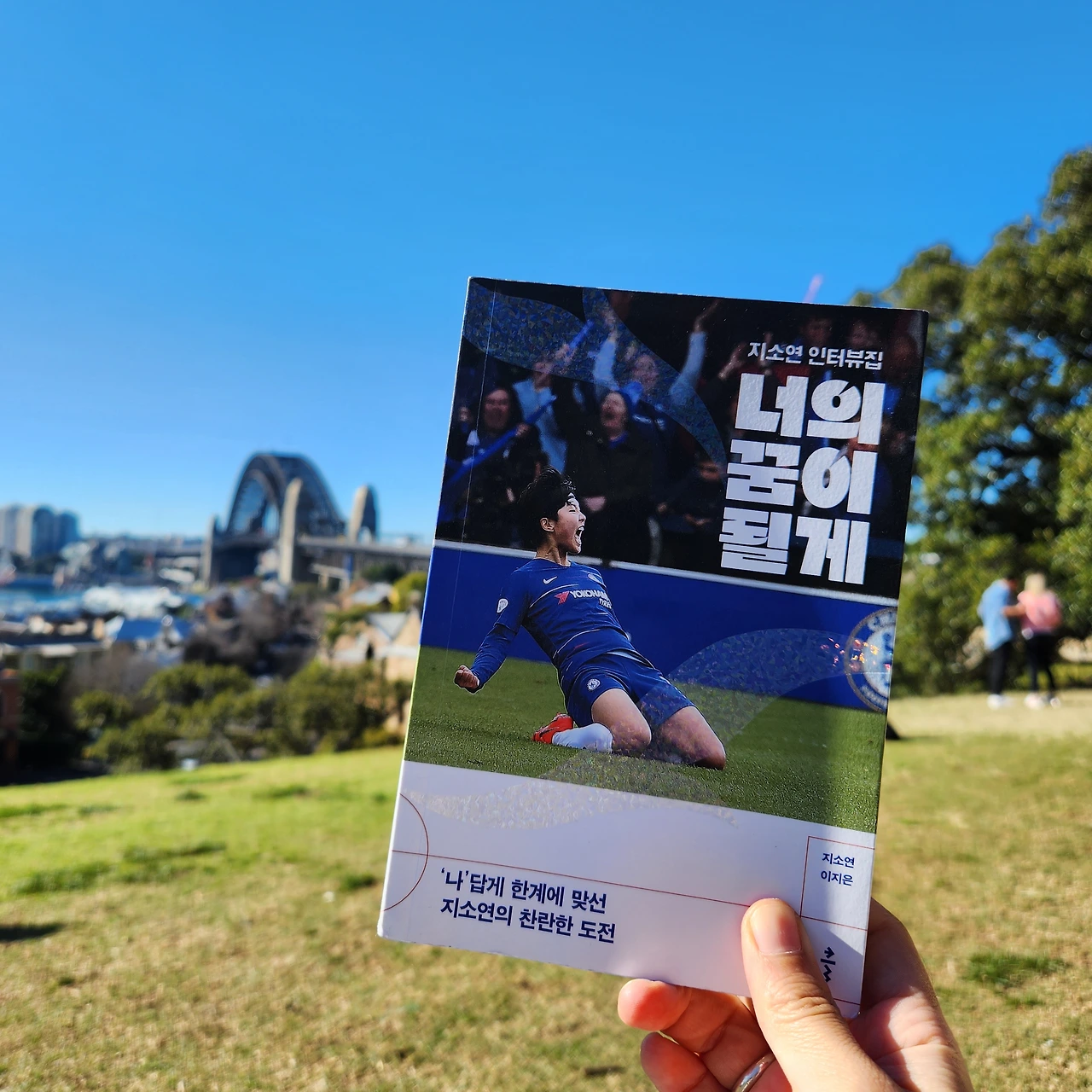 공원 잔디밭에 누워서 책을 읽고 있는데 누군가 아는 척을 해왔다. 리플라 대표님이 문미라 선수님 이름을 보고 반가워서 말을 걸어주셨다. 멋진 카메라를 들고 계셨는데 유니폼을 입은 내 모습을 찍어주신다 했다. 지구 반대편에서 우리 대장님 이름을 아는 사람을 보다니 너무 뿌듯했다. 더 이상 '나의 미라'가 아닌 우리의 미라'가 되는 거 같아서, 미라 선수가 더더욱 유명한 사람이 되었으면 하는 팬이라 기분이 좋았다.