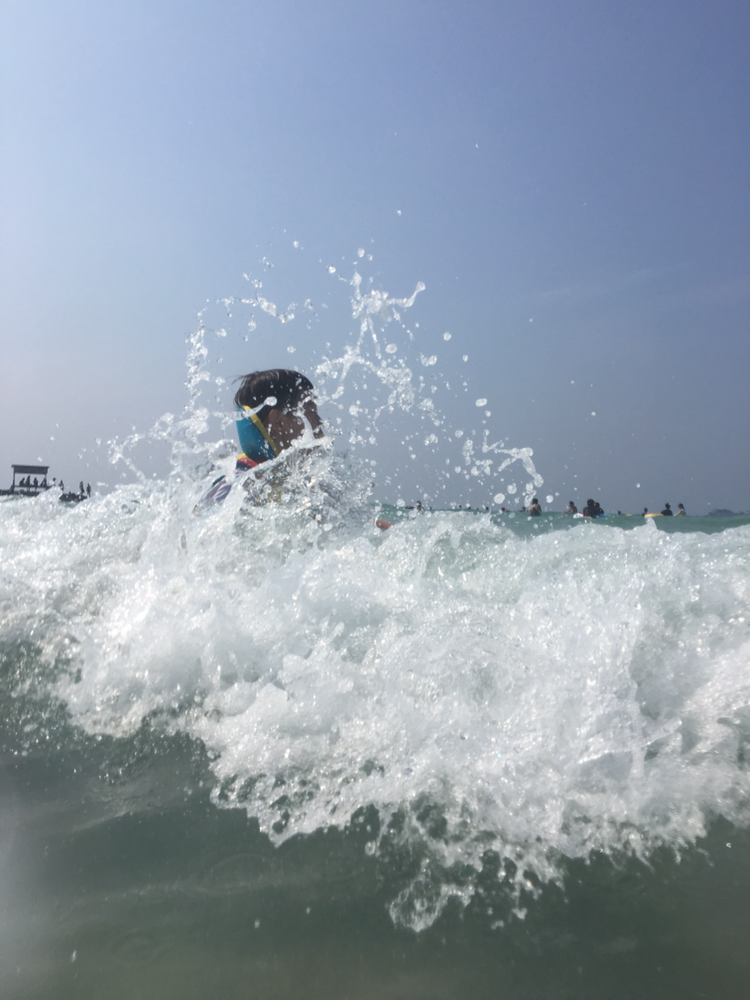 오늘은 파도가 좋아서 아이들의 물놀이에 재미를 더 해준다.