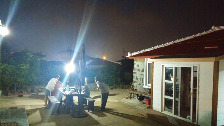마당에서 맛난 제주 돼지 구워 먹고 친구들과의 수다로 오늘 하루 마무리!