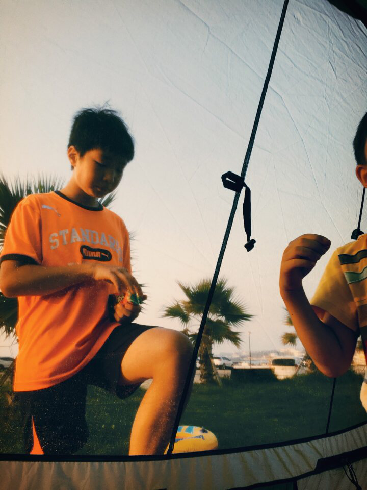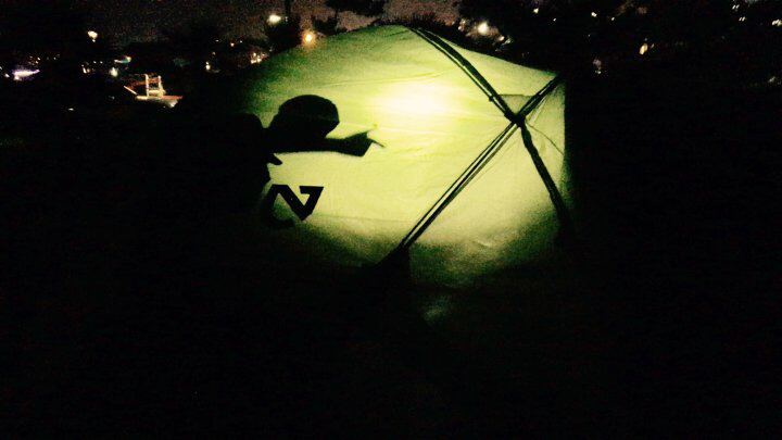 텐트 사진을 찍으려고 나오니 시작된 막둥이의 그림자 극장. ㅎㅎㅎ