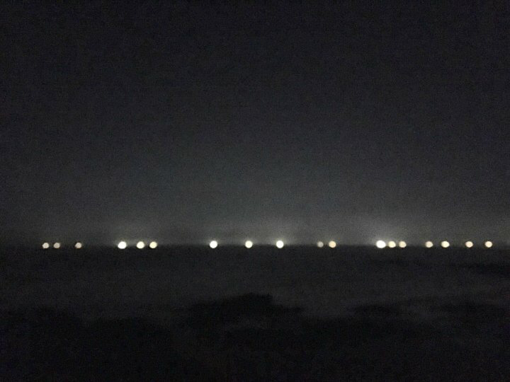 저 멀리 한치잡이 배들이 켜 놓은 집어등이 보이고 파도 소리와 풀벌레 소리만 남은 해변.