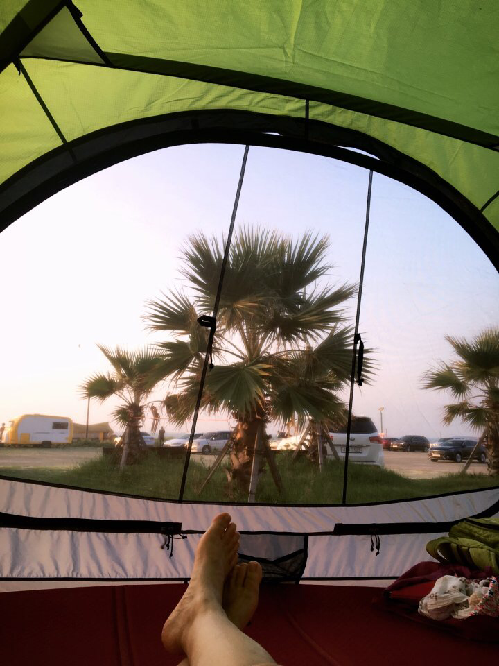 시원한 바닷바람 솔솔 들어오는 텐트에 누워서 쉬는 맛은 정말 핵 꿀맛이다!