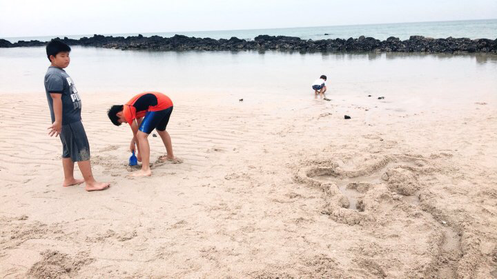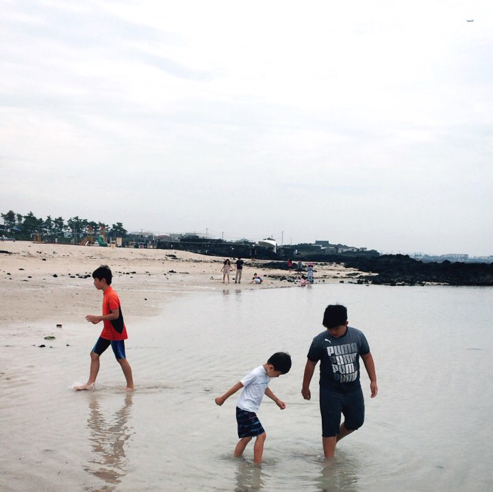 나와 어린이들은 곽지과물 해변 물놀이에 나선다.
