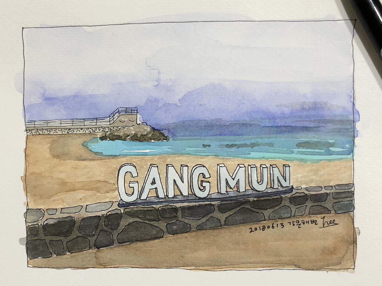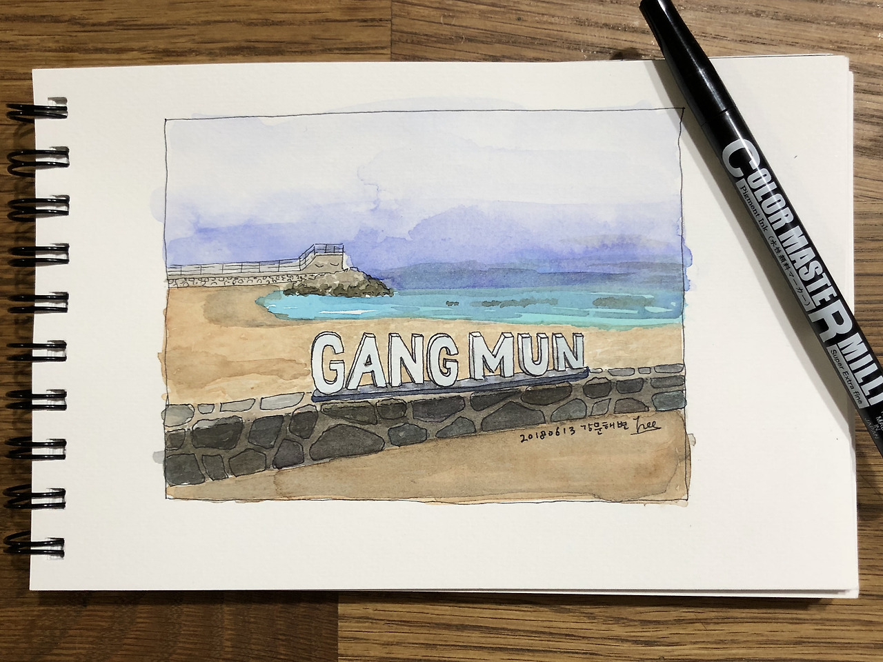 아까 강문해변 카페에서 급하게 그린 그림에 대해