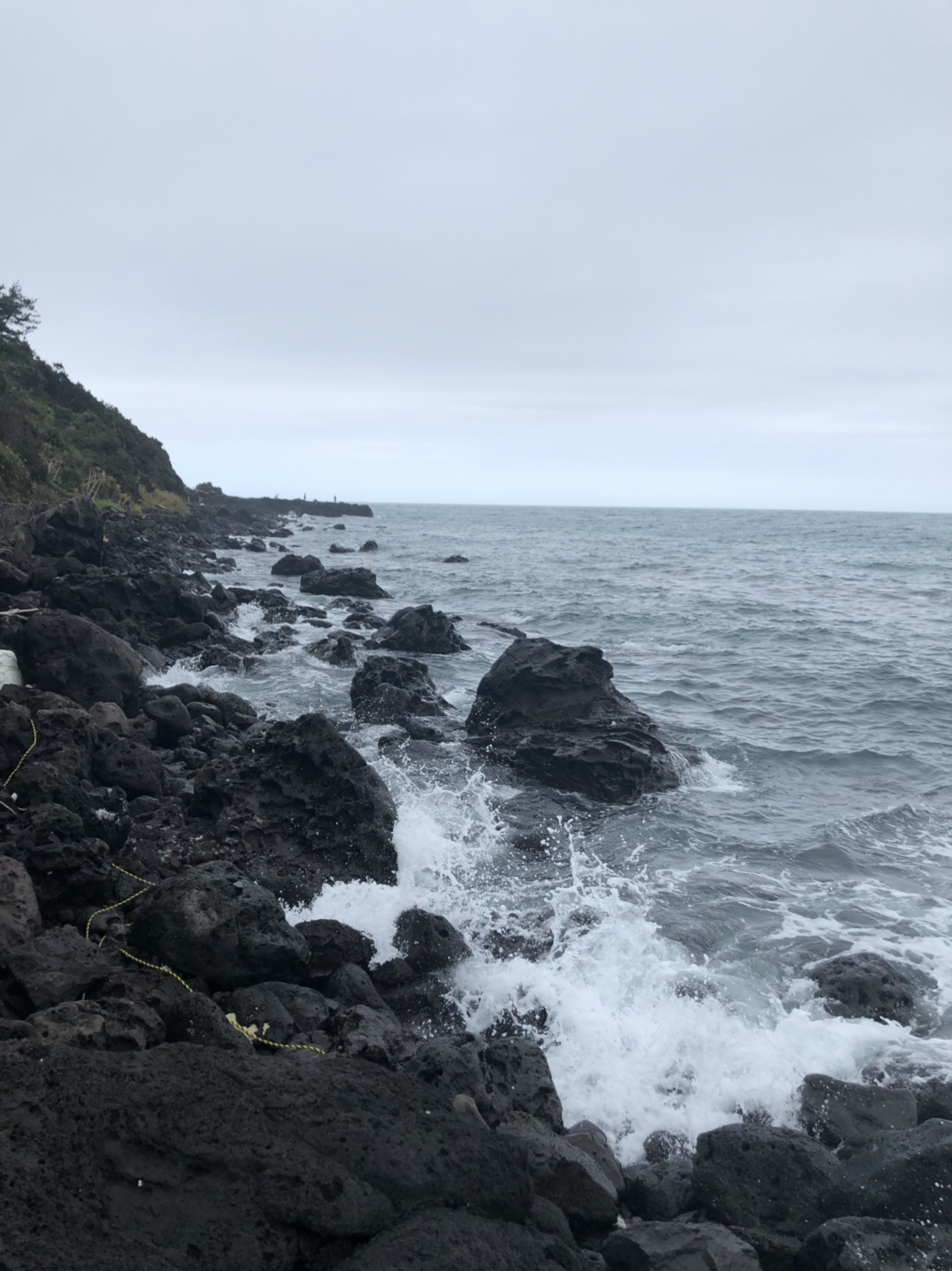 밀물때인지 파도가 들이쳐서 갈 수가 없다.