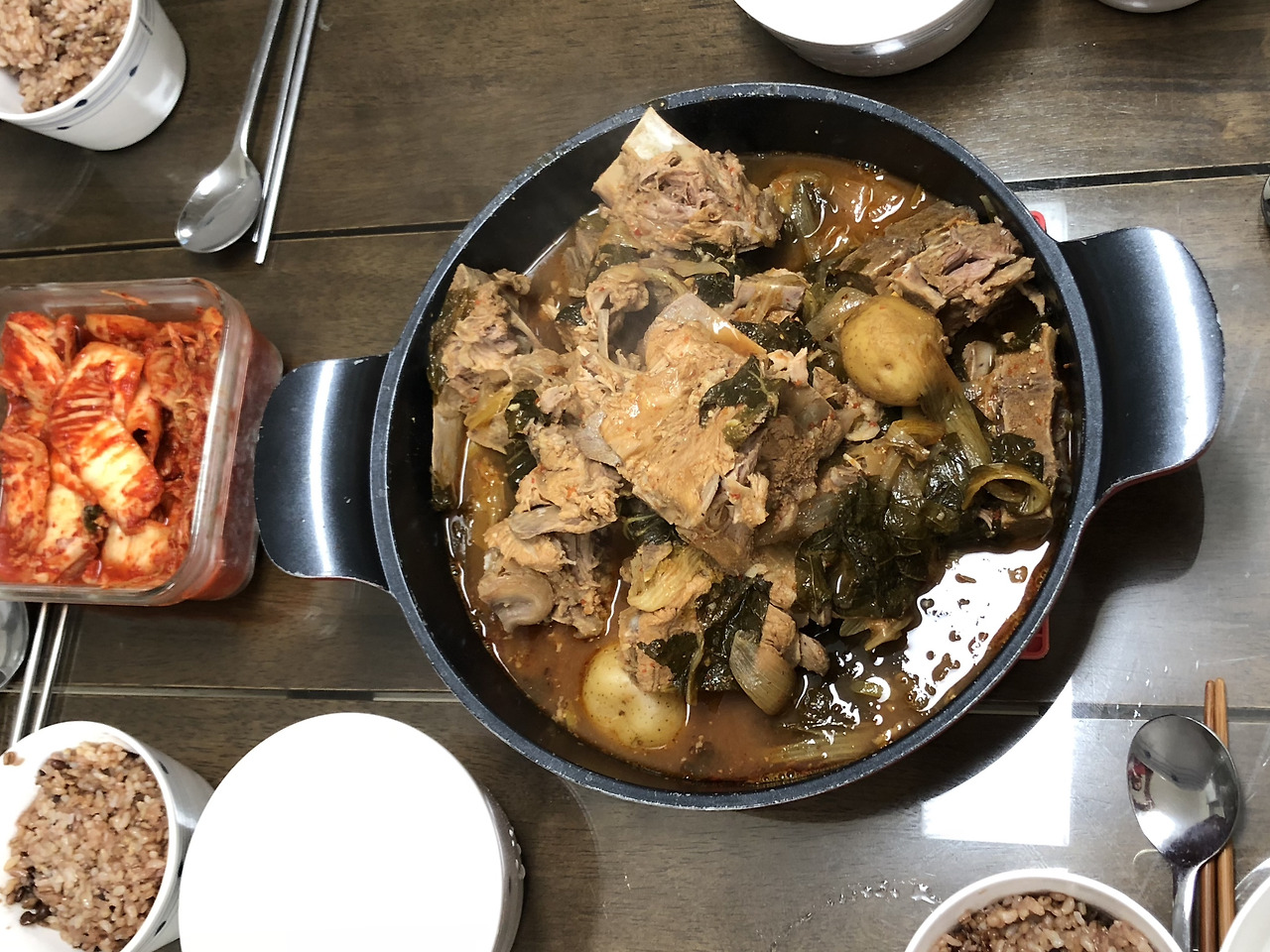 ( 큰 냄비에서 깨끗하게 덜어 먹었으니 )