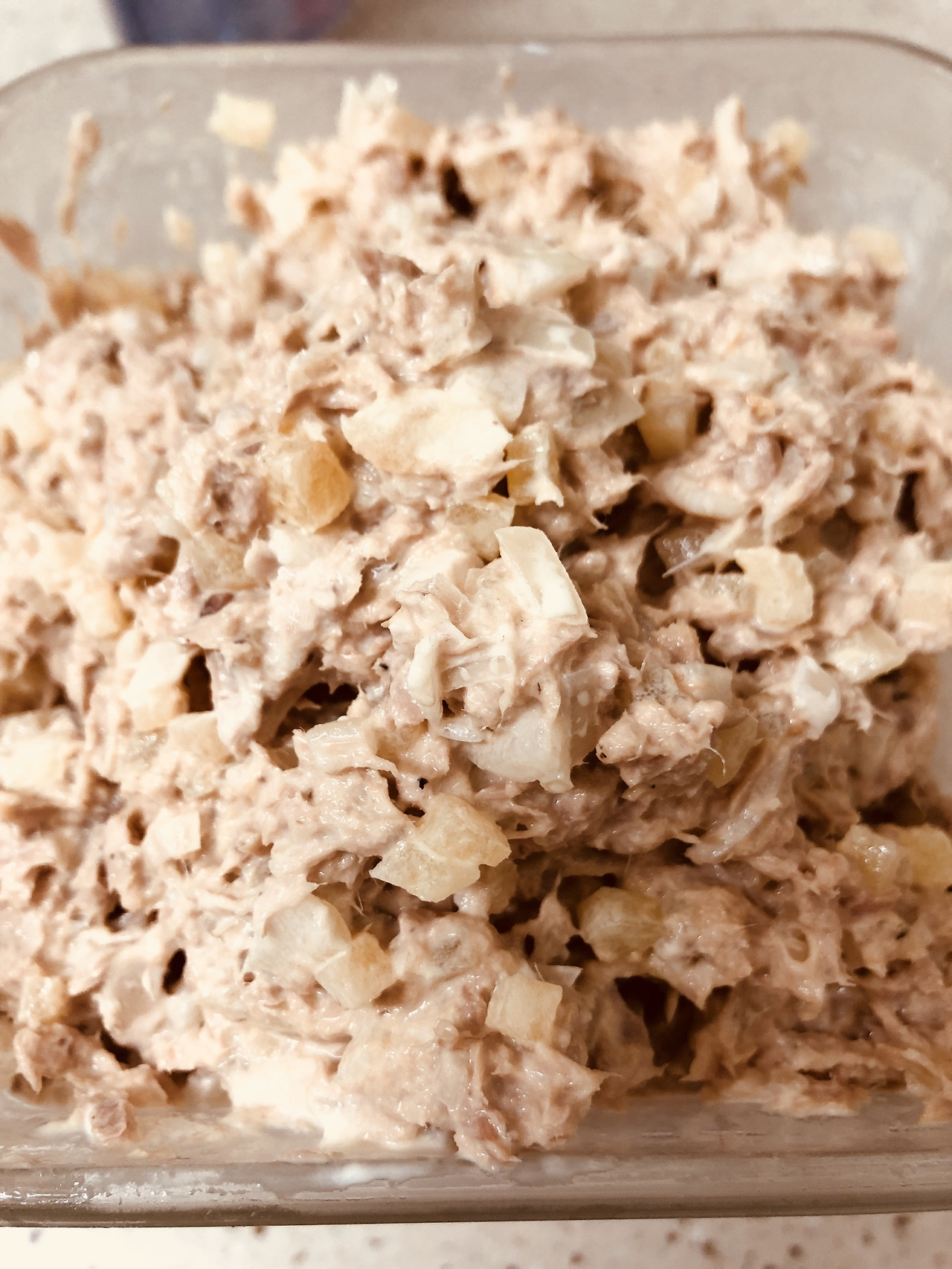 참치, 마요네즈, 다진 단무지와 양파.