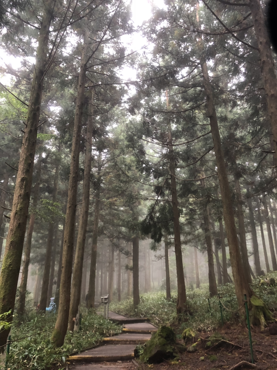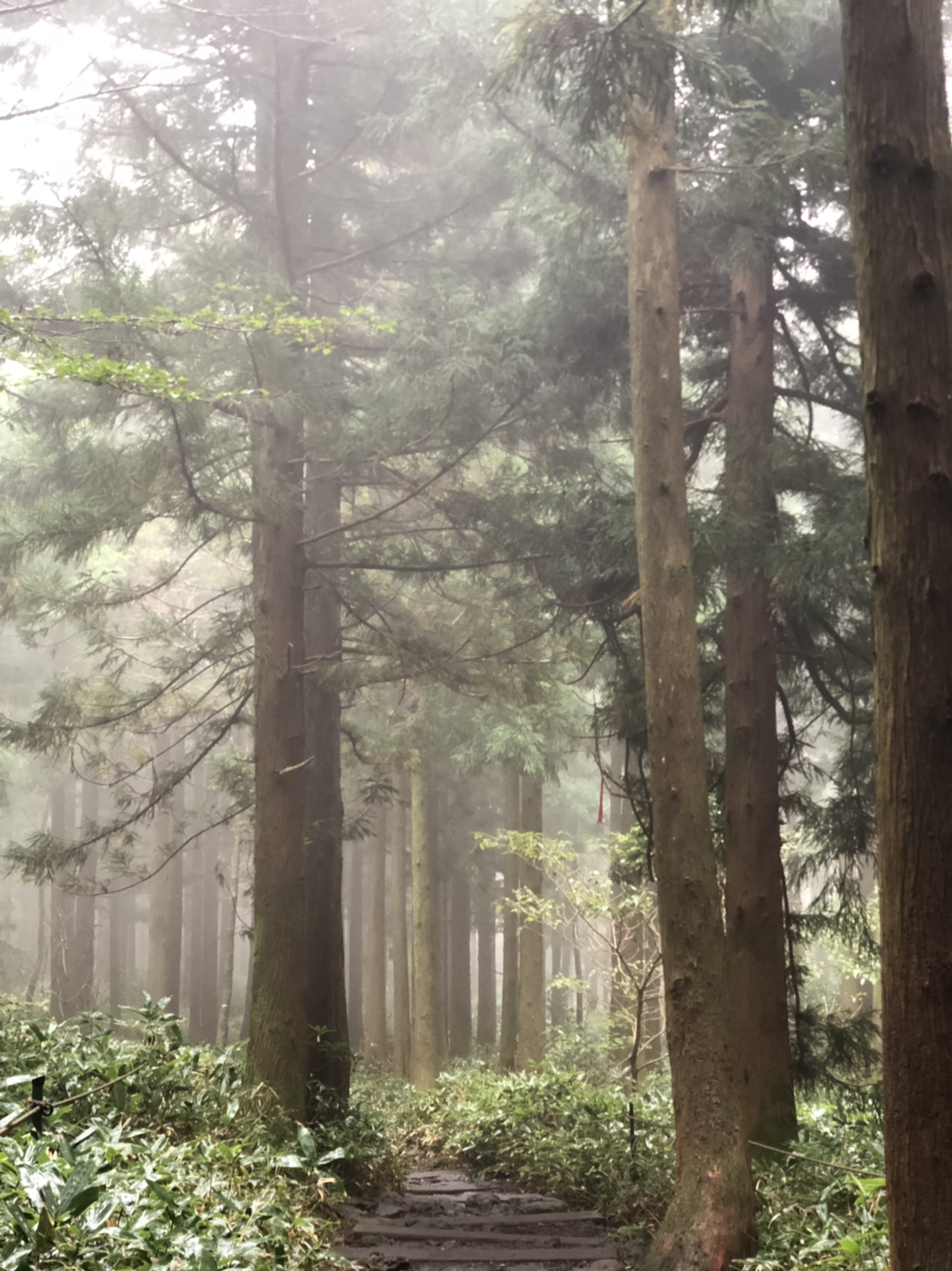 안개가 바람에 몰려와 숲이 시시각각 변하는 모습.