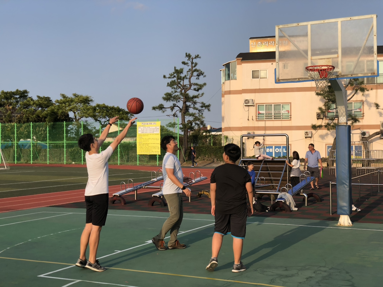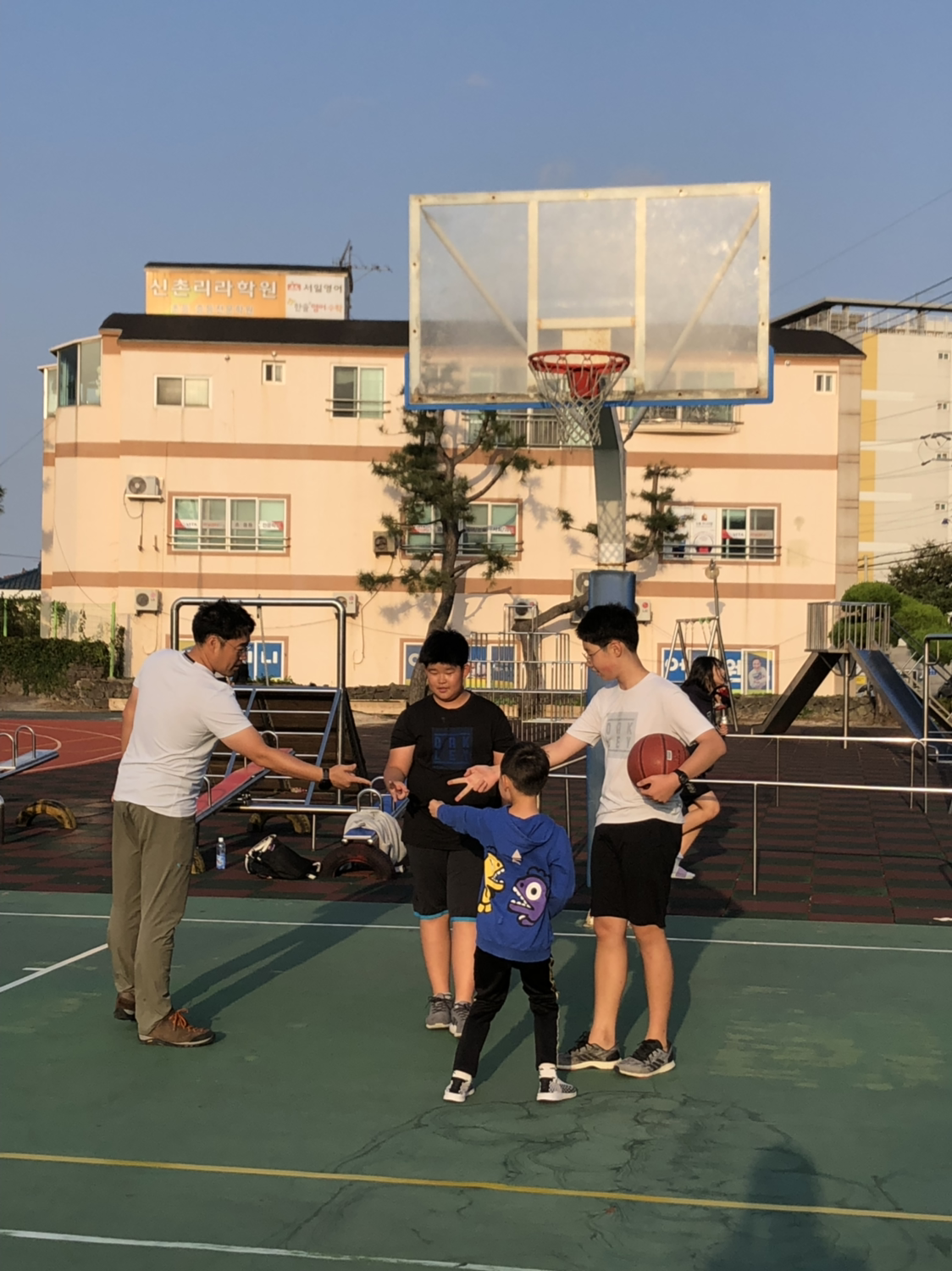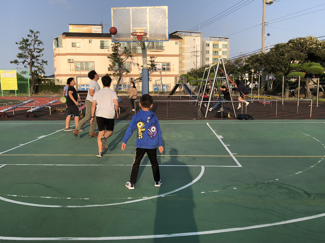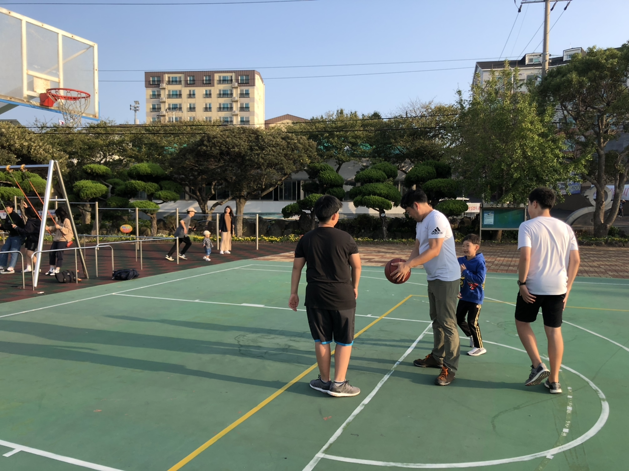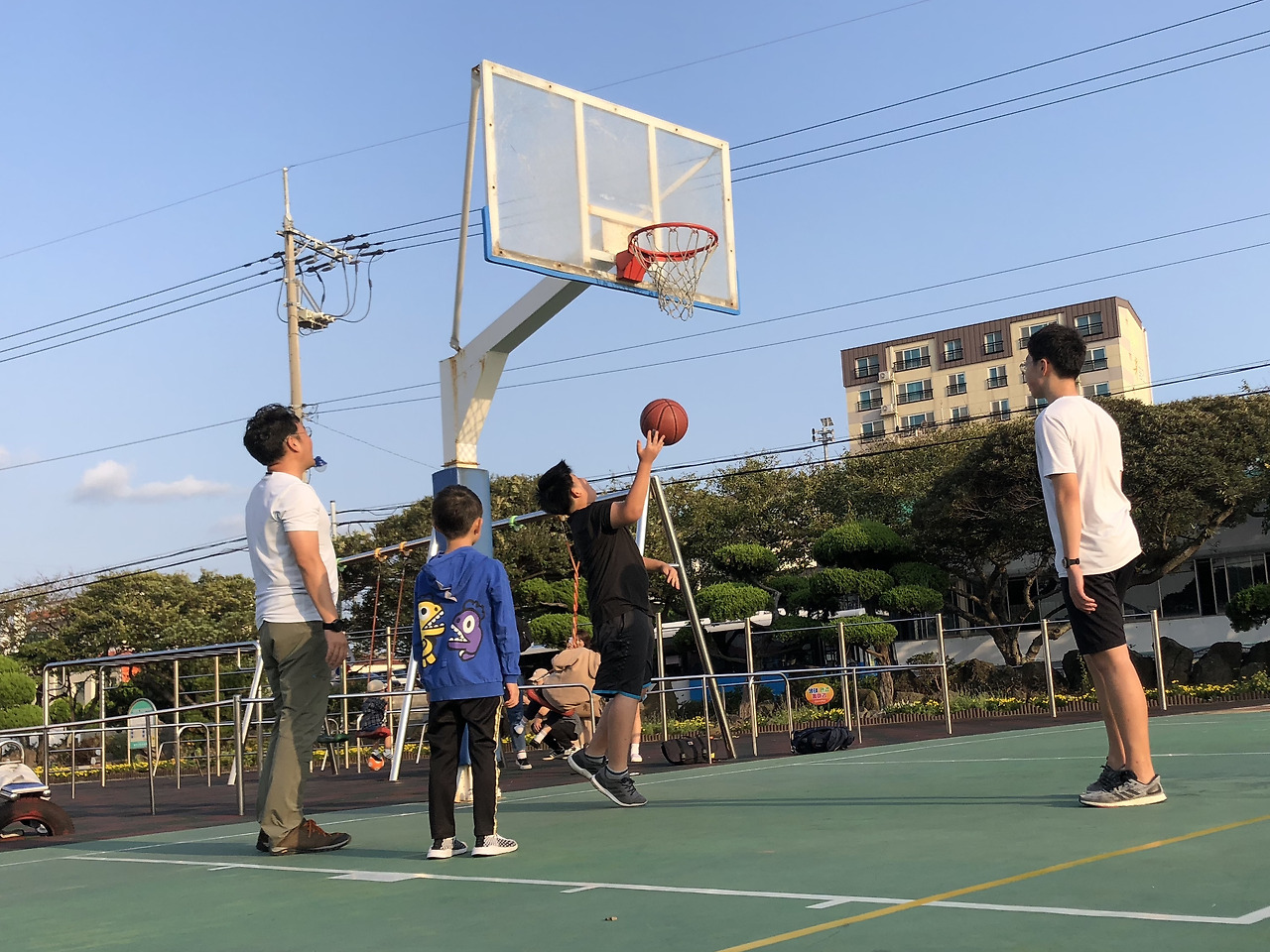아이들이 아빠와 함께 농구를 하고 싶다고 한다.