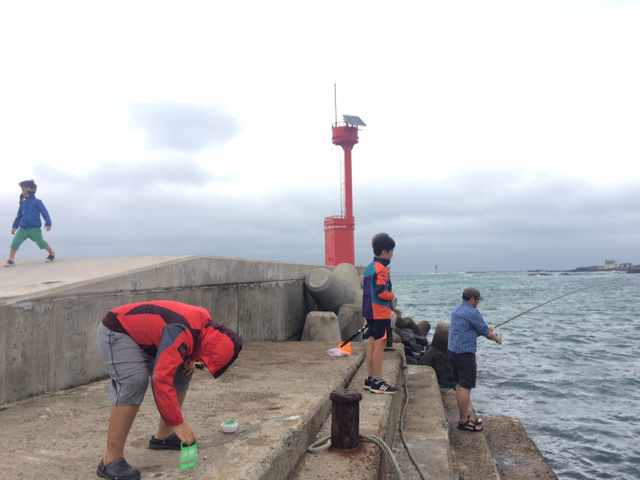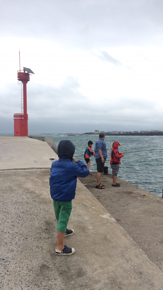 비양도에 다녀온 뒤 집에서 좀 쉬다가 낚시하러 등대로.