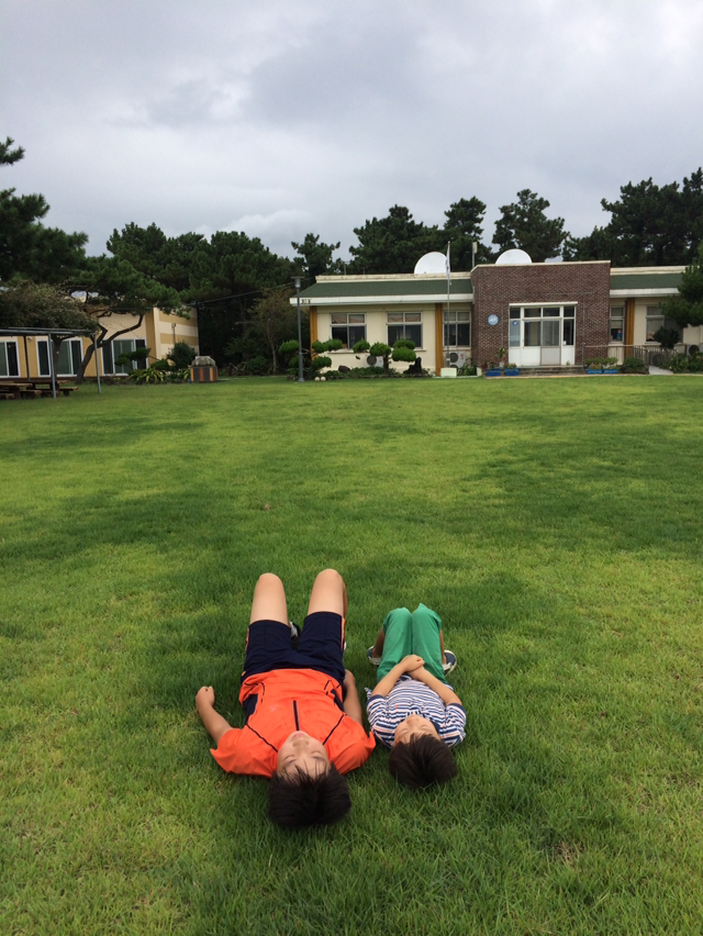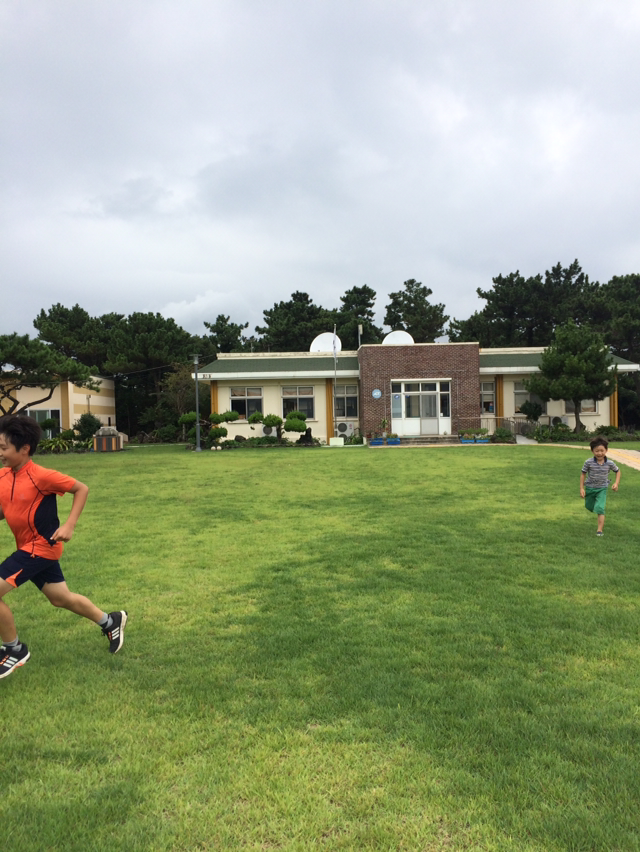 제주의 초등학교 운동장에는 잔디가 깔려있다. 넘나 부러운 것!