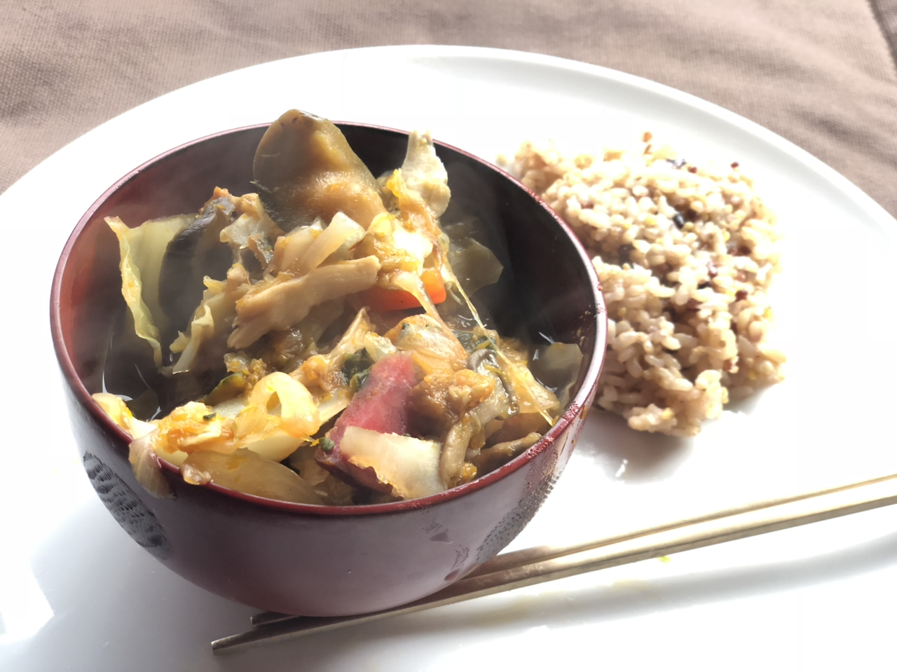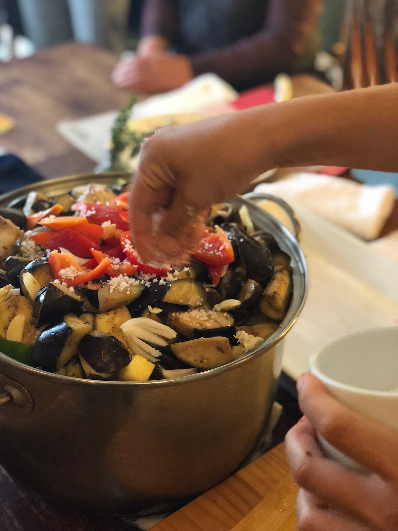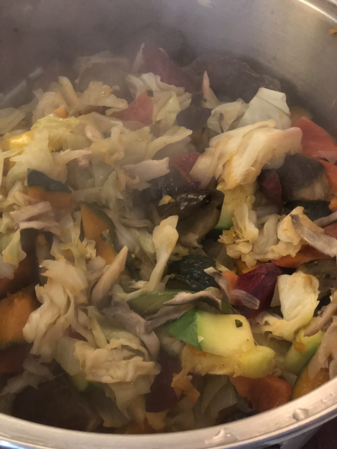 온갖 채소를 층층이 쌓아 만드는 채소층찜.
