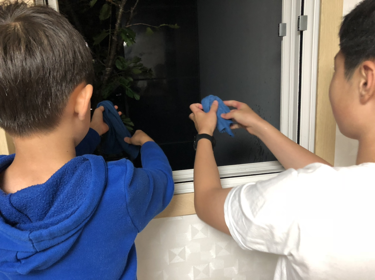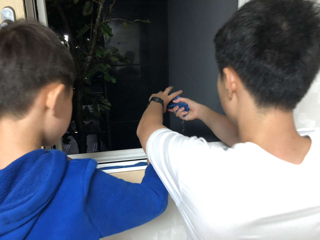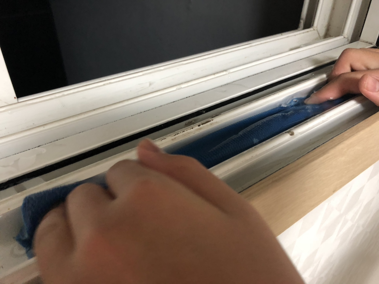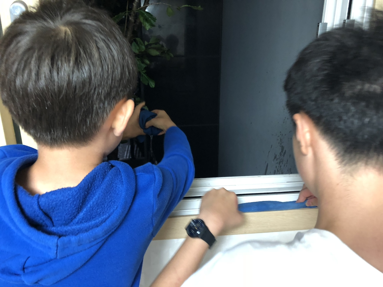 창틀에 고인 물 빼는 것도 즐거운 형제님들.