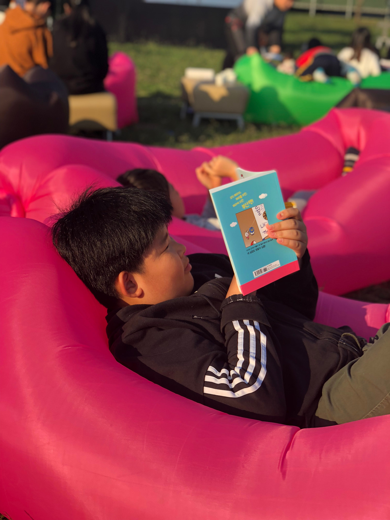 소파에 누워 재미난 책 보며 키득키득.