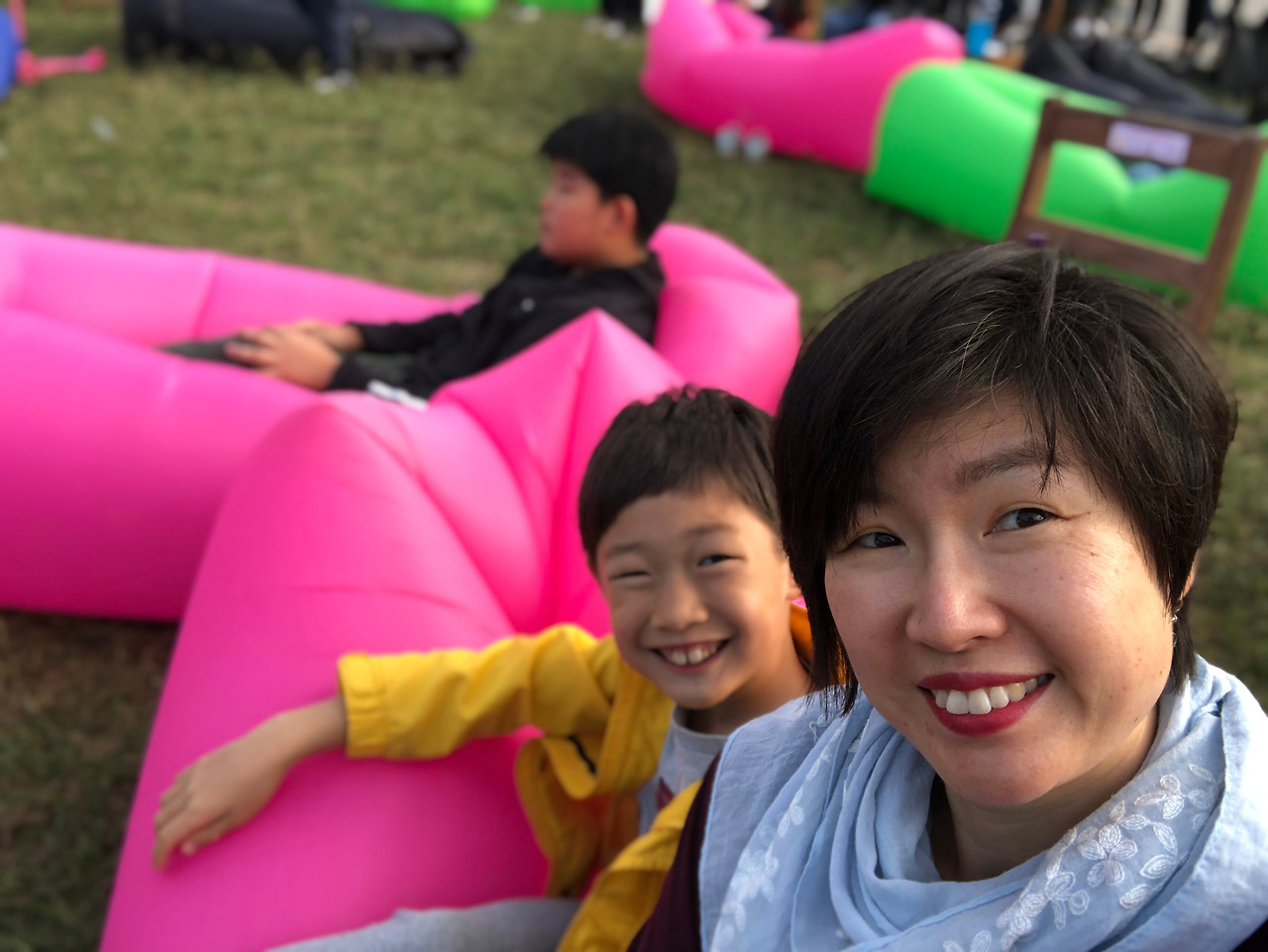 공원 잔디밭 곳곳에