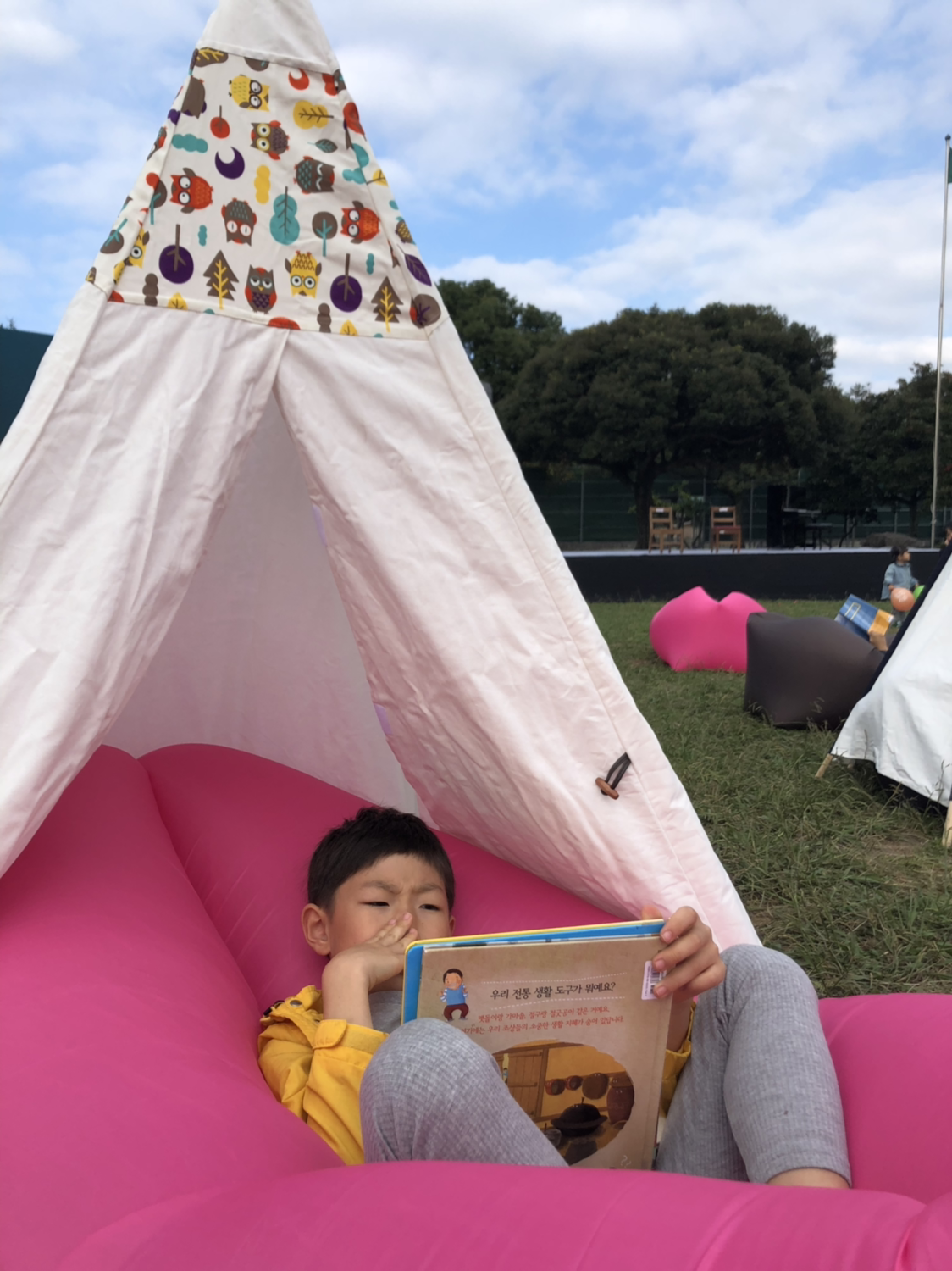 4시에 아이들이 놀고 있는 야외무대에서