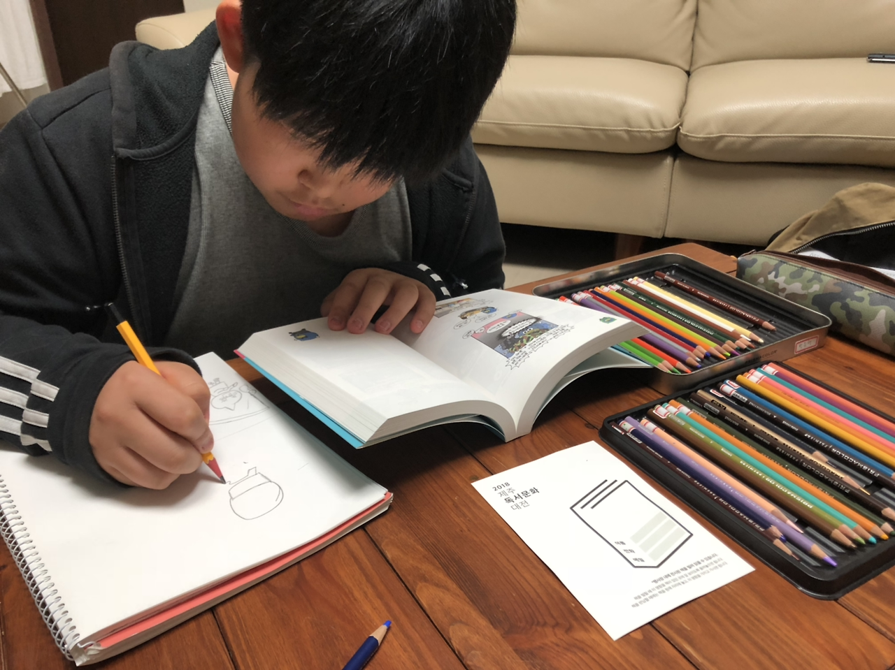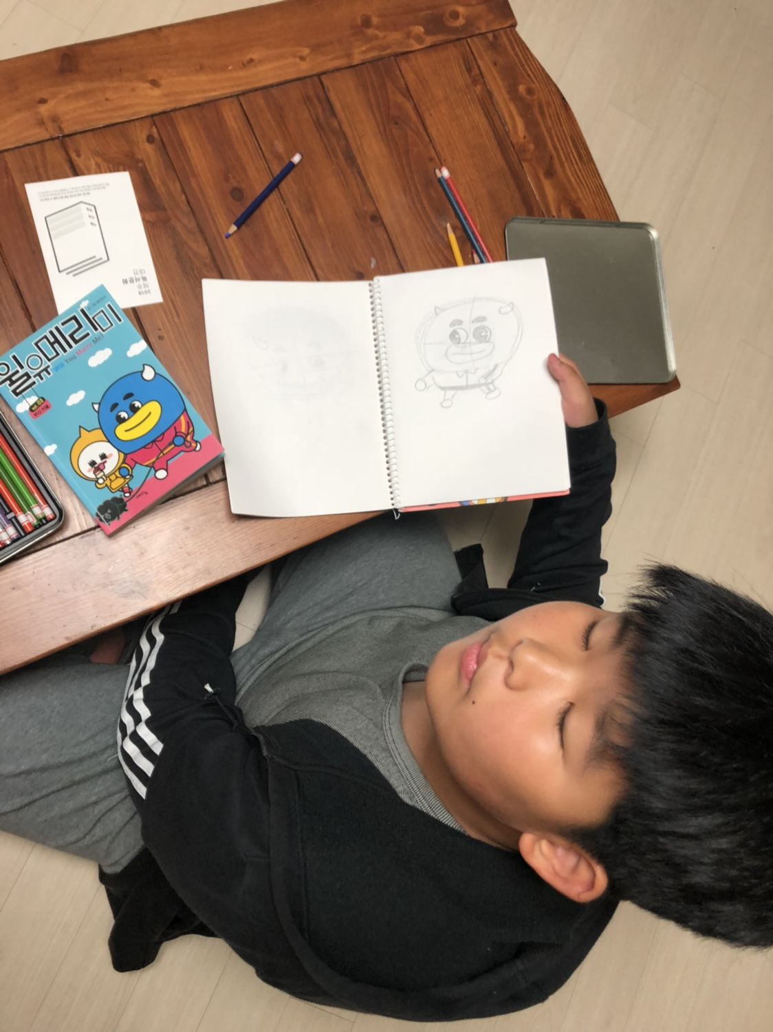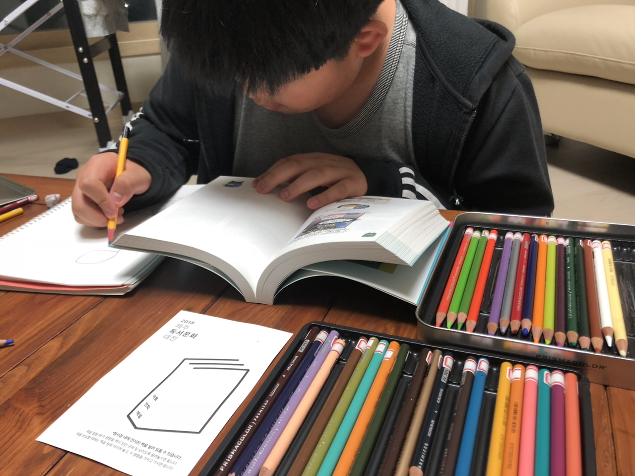 색연필 꺼내 그림 그리는 녀석.