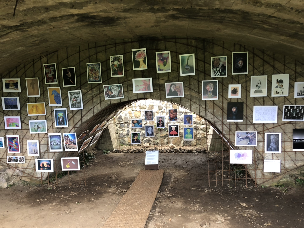 남아있는 격납고에 조형작품들이 설치되어 있고
