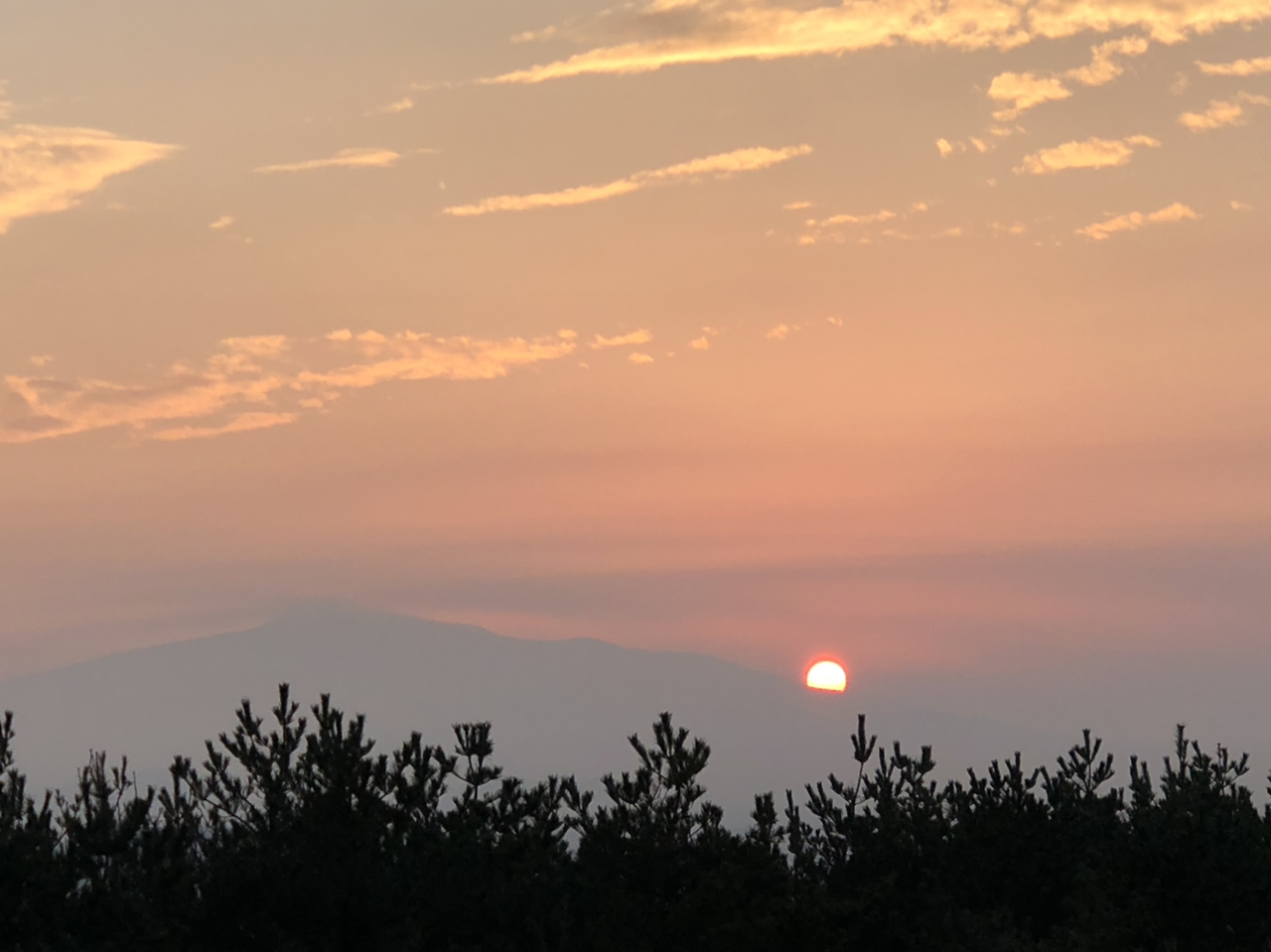 저렇게 동그란 해와 한라산의 실루엣이 보이다니