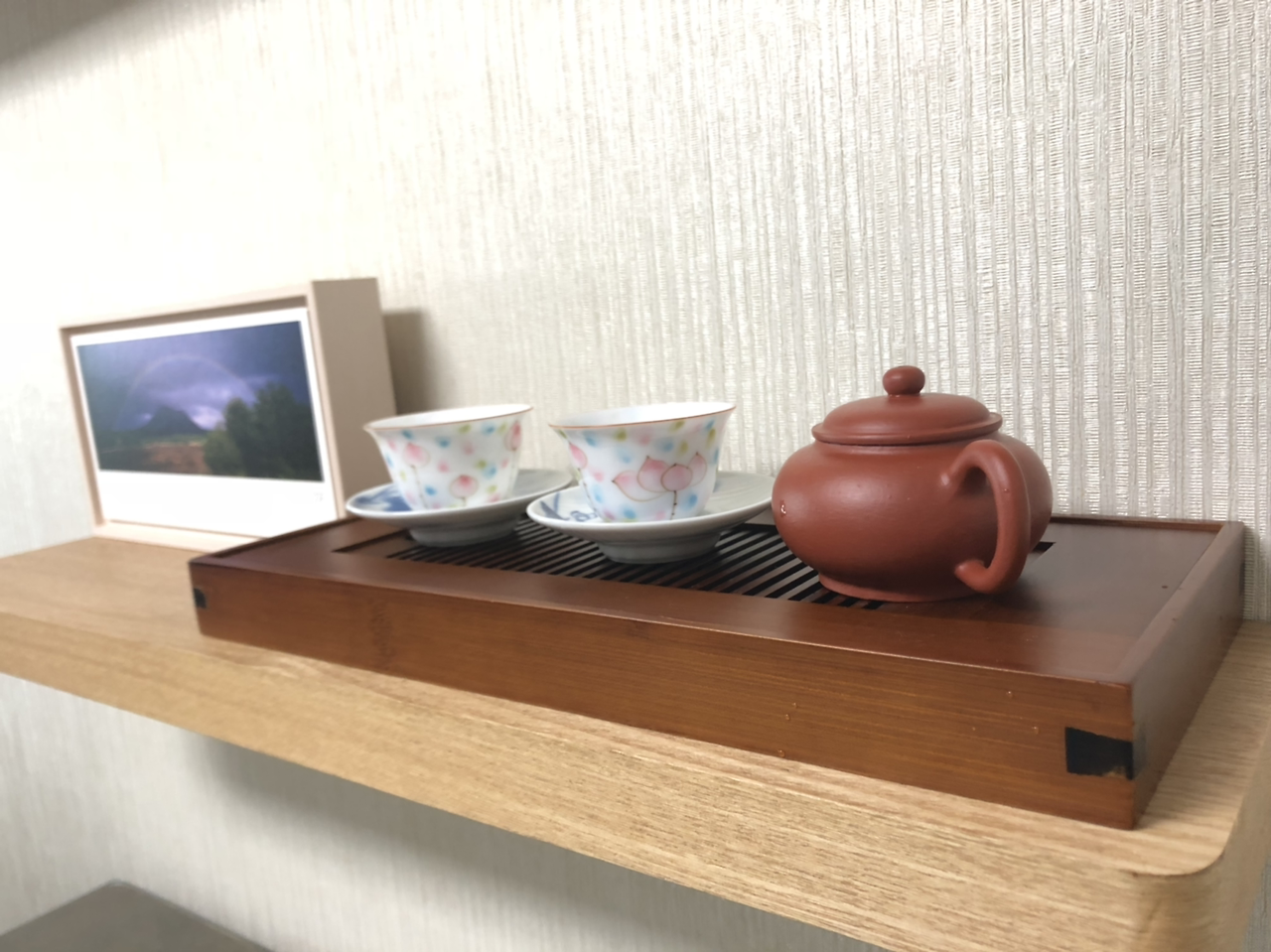 차 두잔 나오는 작은 자사호와 얇고 이쁜 경덕진 찻잔을 들였다. 작은 차판과 찻잔 받침도.