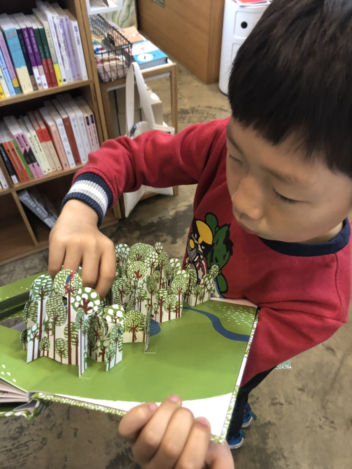 팝업북을 들춰 보더니 금새 반해버린 1학년 어린이.