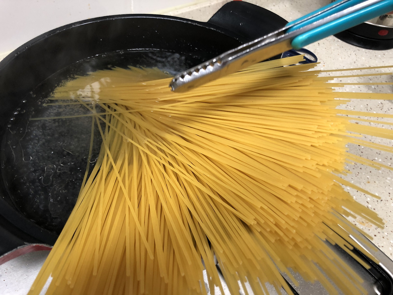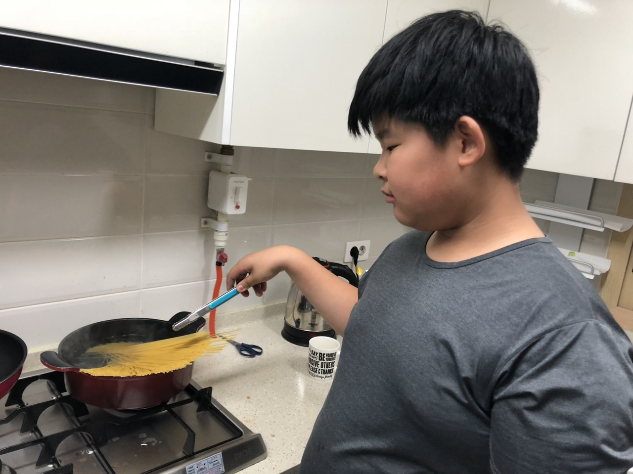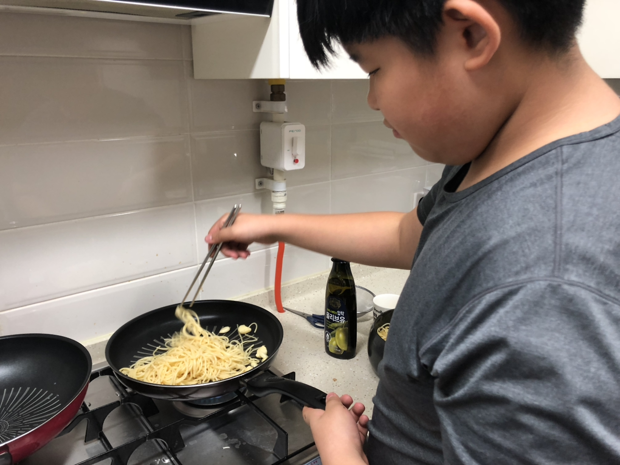 둘째 아들이 현란한 프라이팬 돌리기 신공을 펼쳐 만들어 주는 스파게티 푸짐하게 먹고