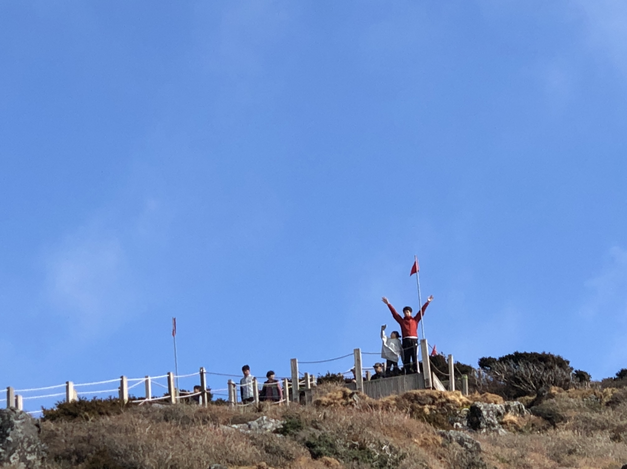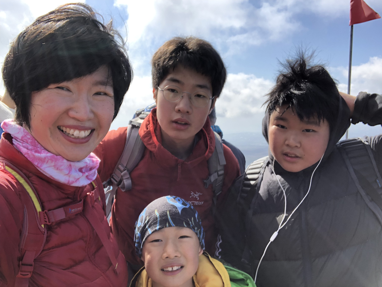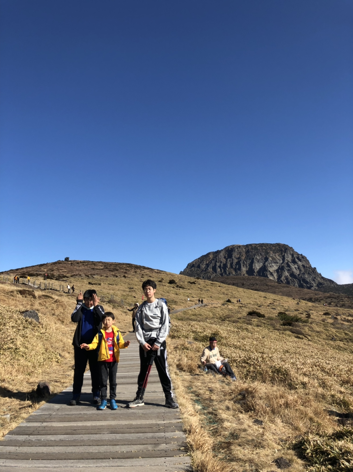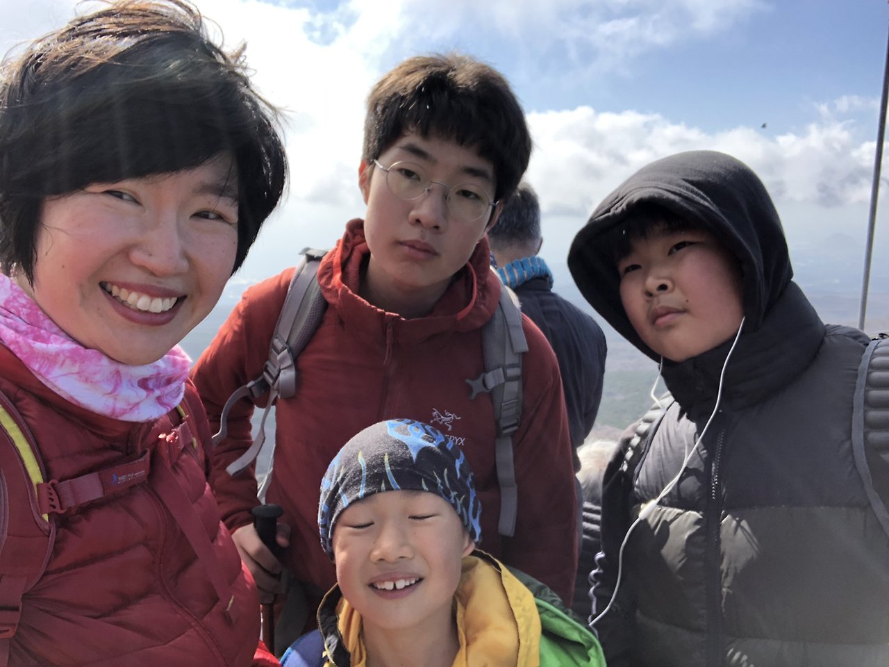정상에서 함께 사진 찍은 후 큰 아들과 막내 아들은 먼저 가서 차에서 쉬겠다고 하산길을 재촉한다.