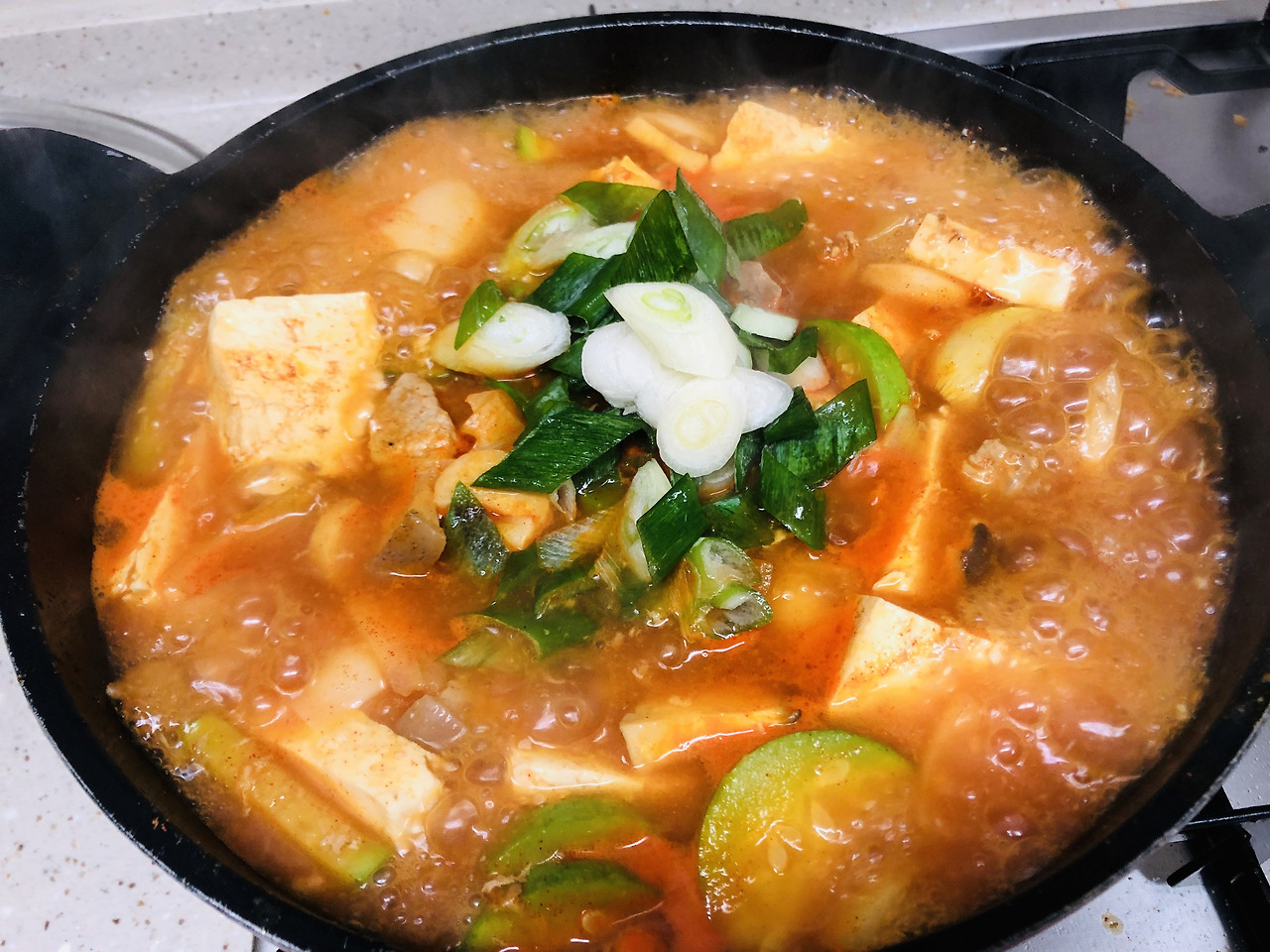 정성에 비해 효과 만점인 고추장 찌개를 끓인다.