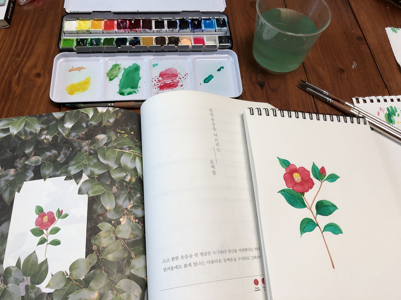 예쁘게 표현해 보고 싶었던 동백 꽃.