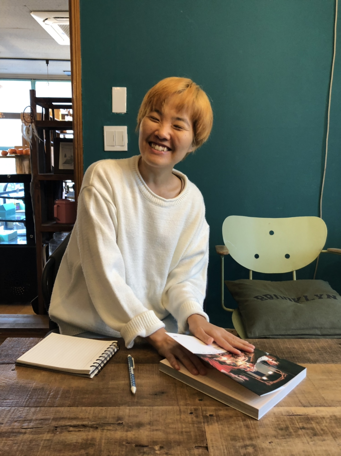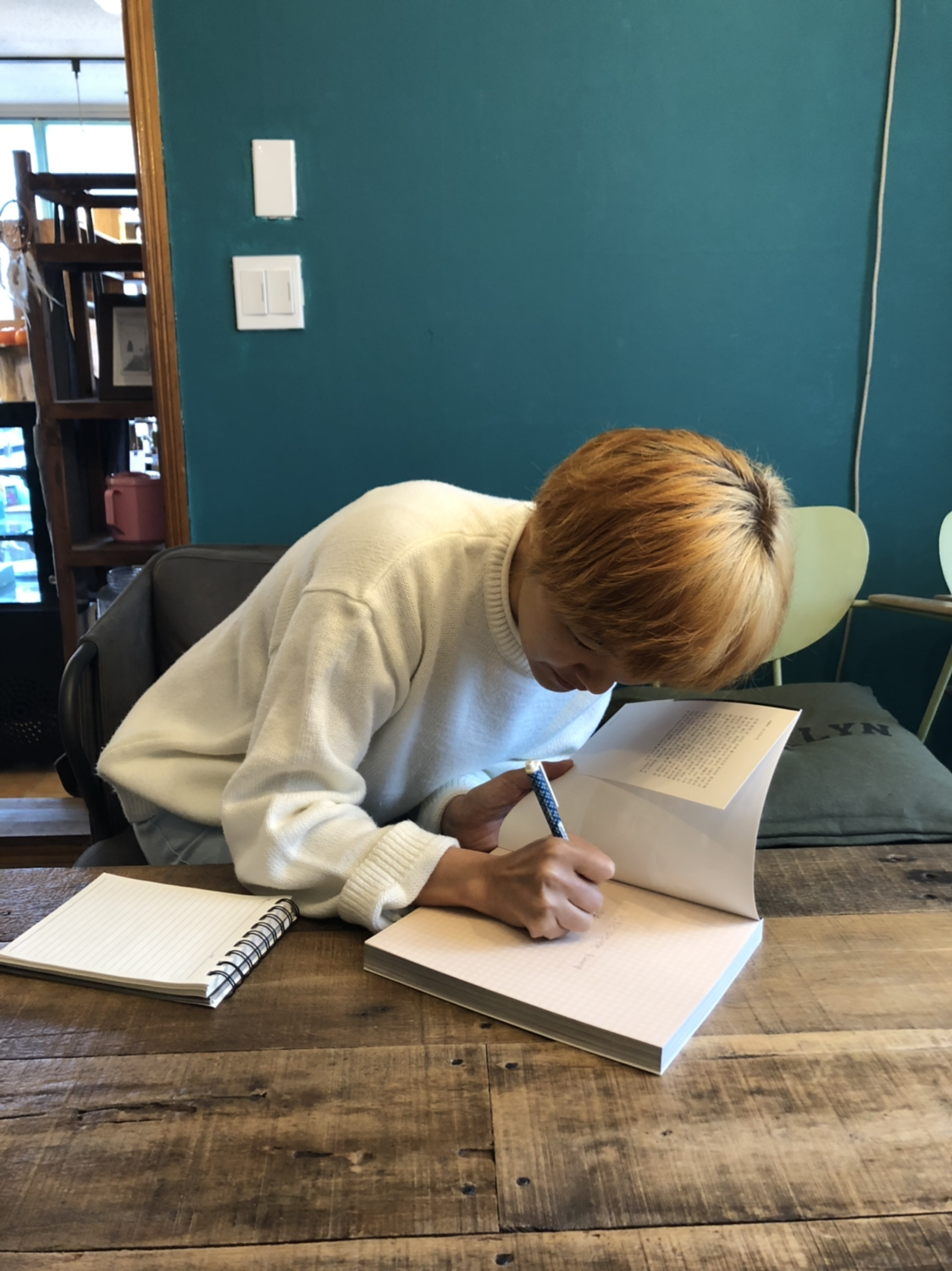 엄청 부끄러워 하며 정성껏 싸인하는 소다미님.