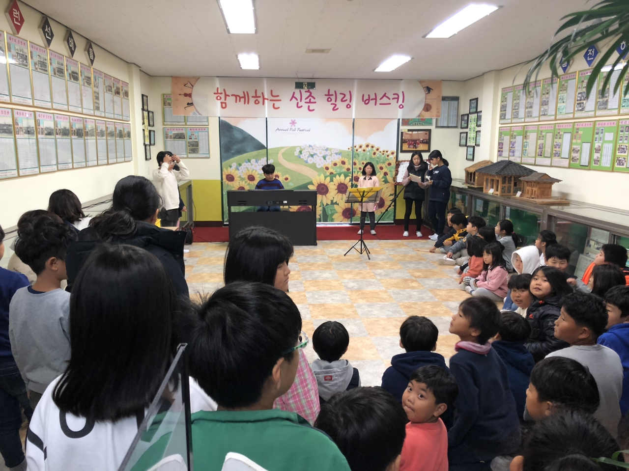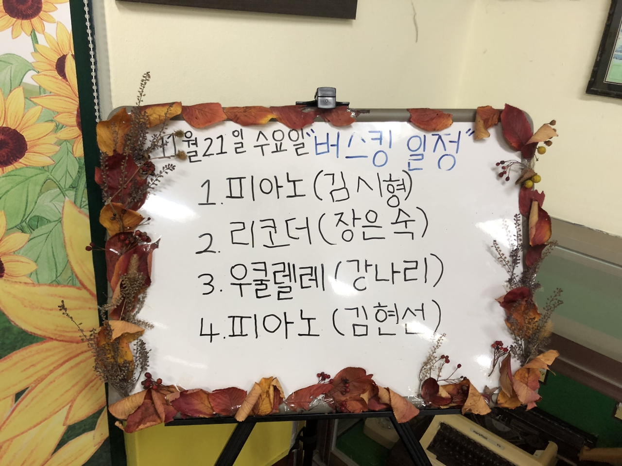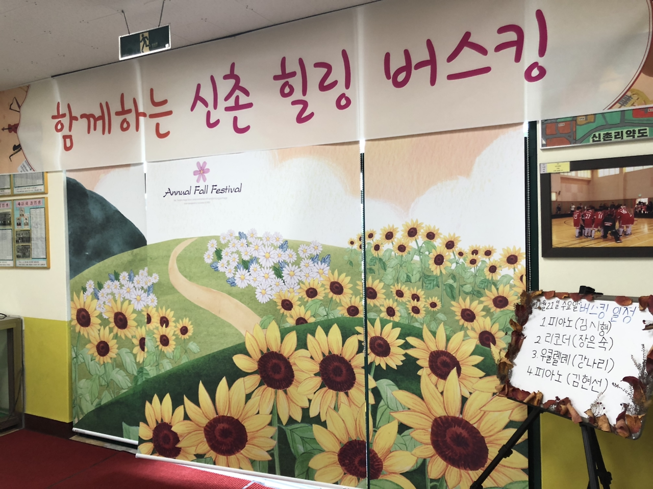 쉬는 시간에는 학교 현관 앞에 무대를 만들어 매주 버스킹 공연도 한다.