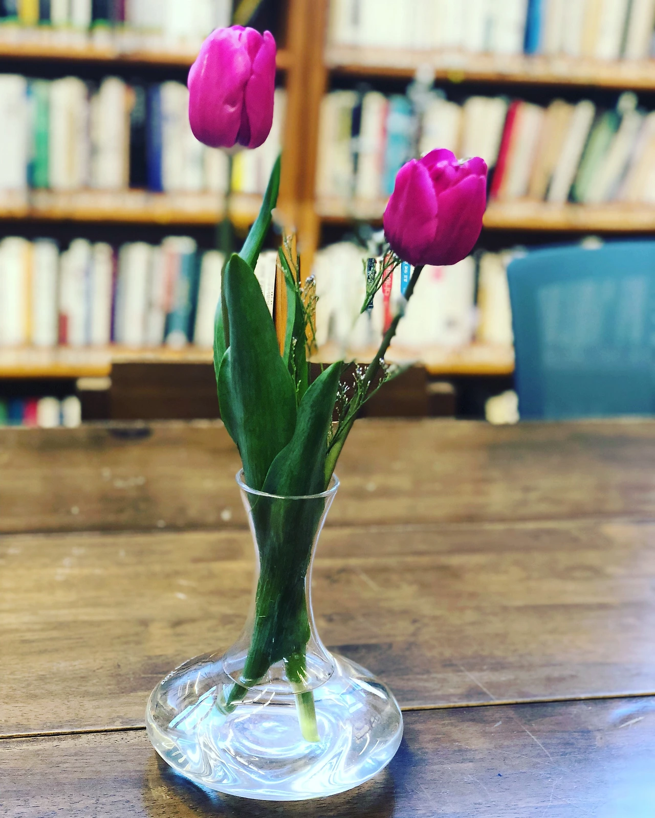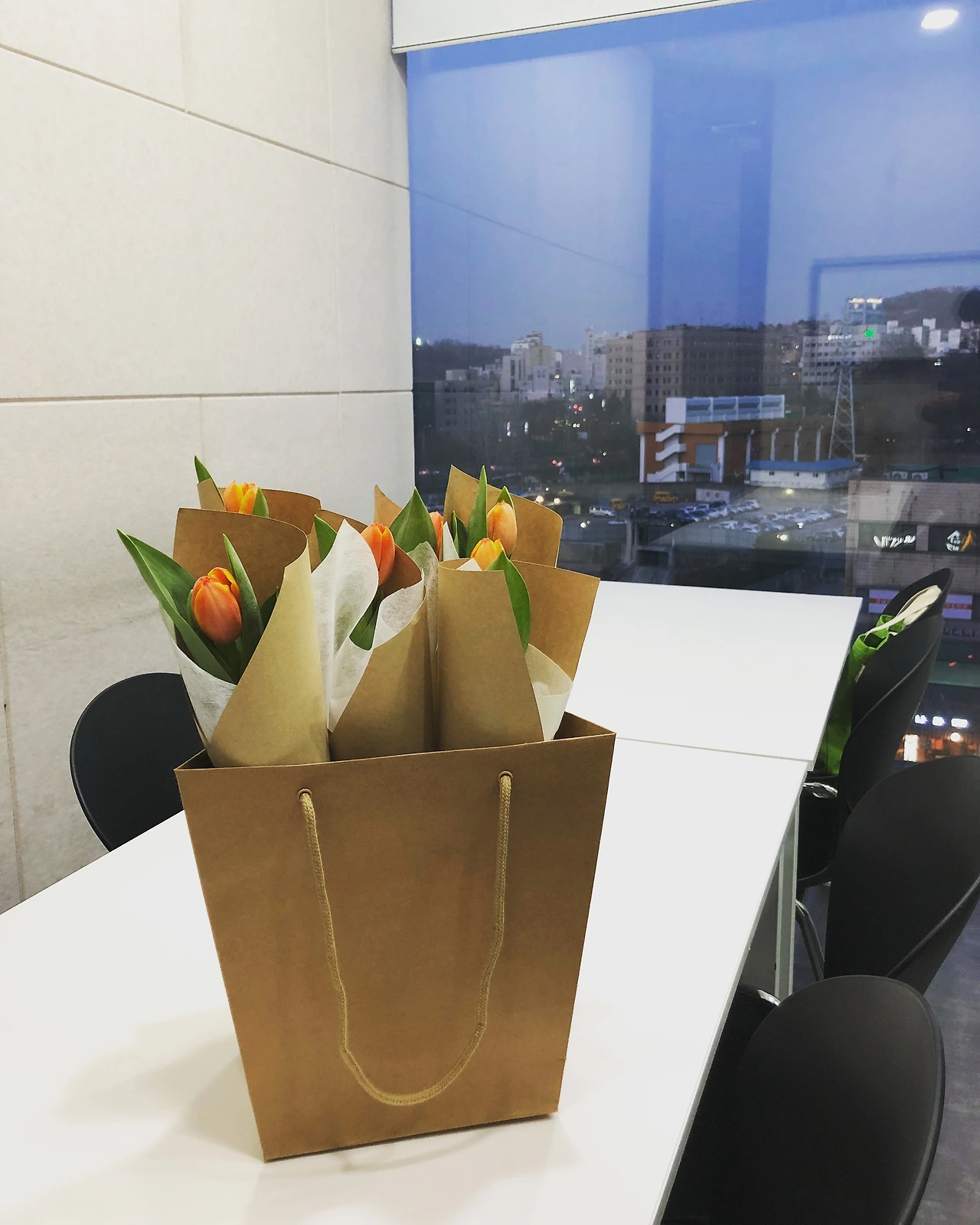 그 때 낭독회 참여자로 온 분에게 튤립을 화병 채로 선물 받았다.