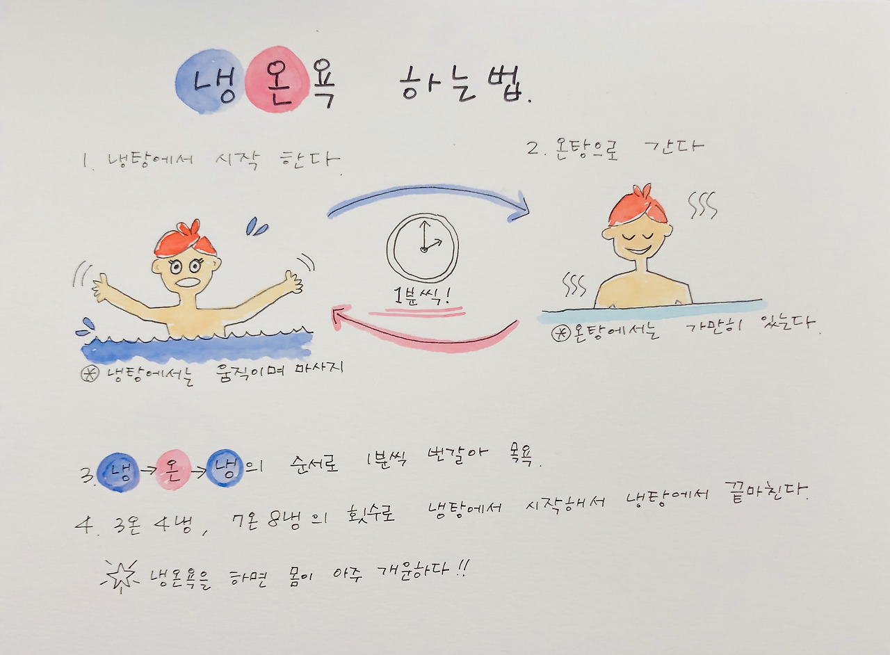 냉, 온탕을 각 1분씩 번갈아 들어간다.