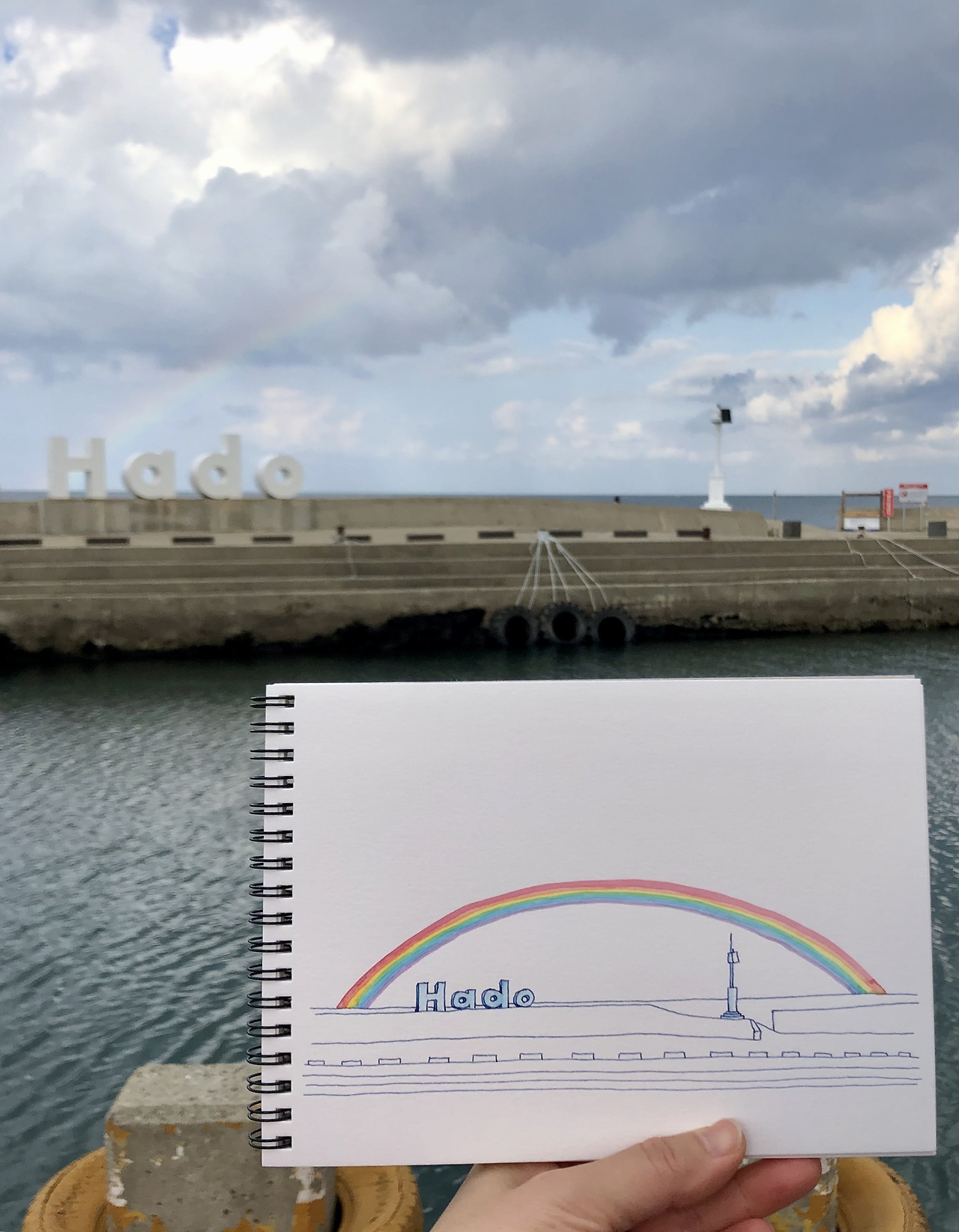 무지개를 강조하고 싶어서 만년필로 간단하게 그림.(근데 사진을 보니 덜 그린것 같은,,, )