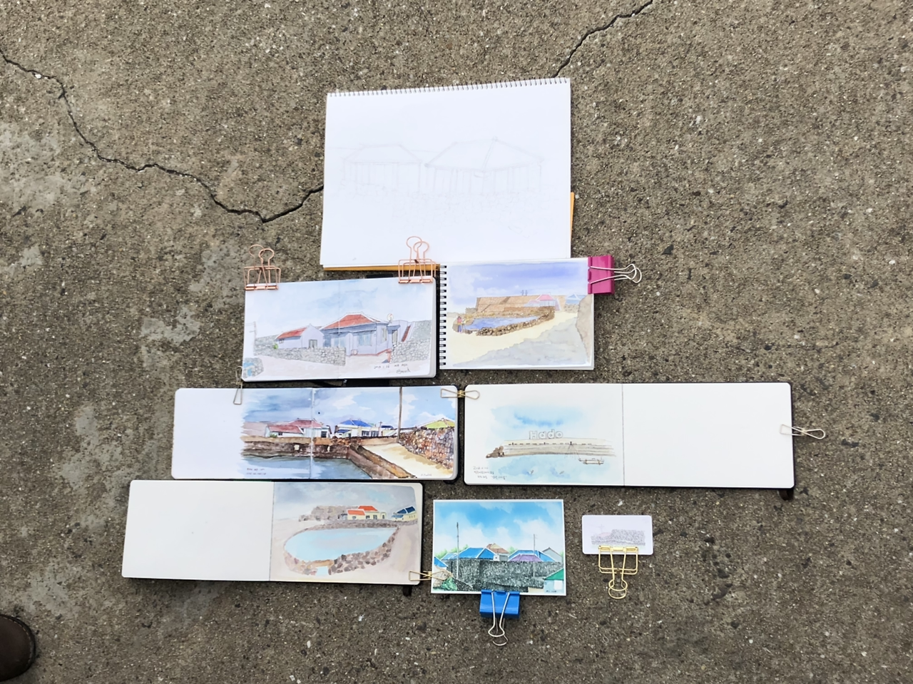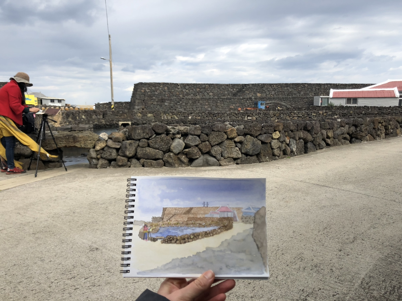 하도리 포구를 바라 보며 어반스케치.