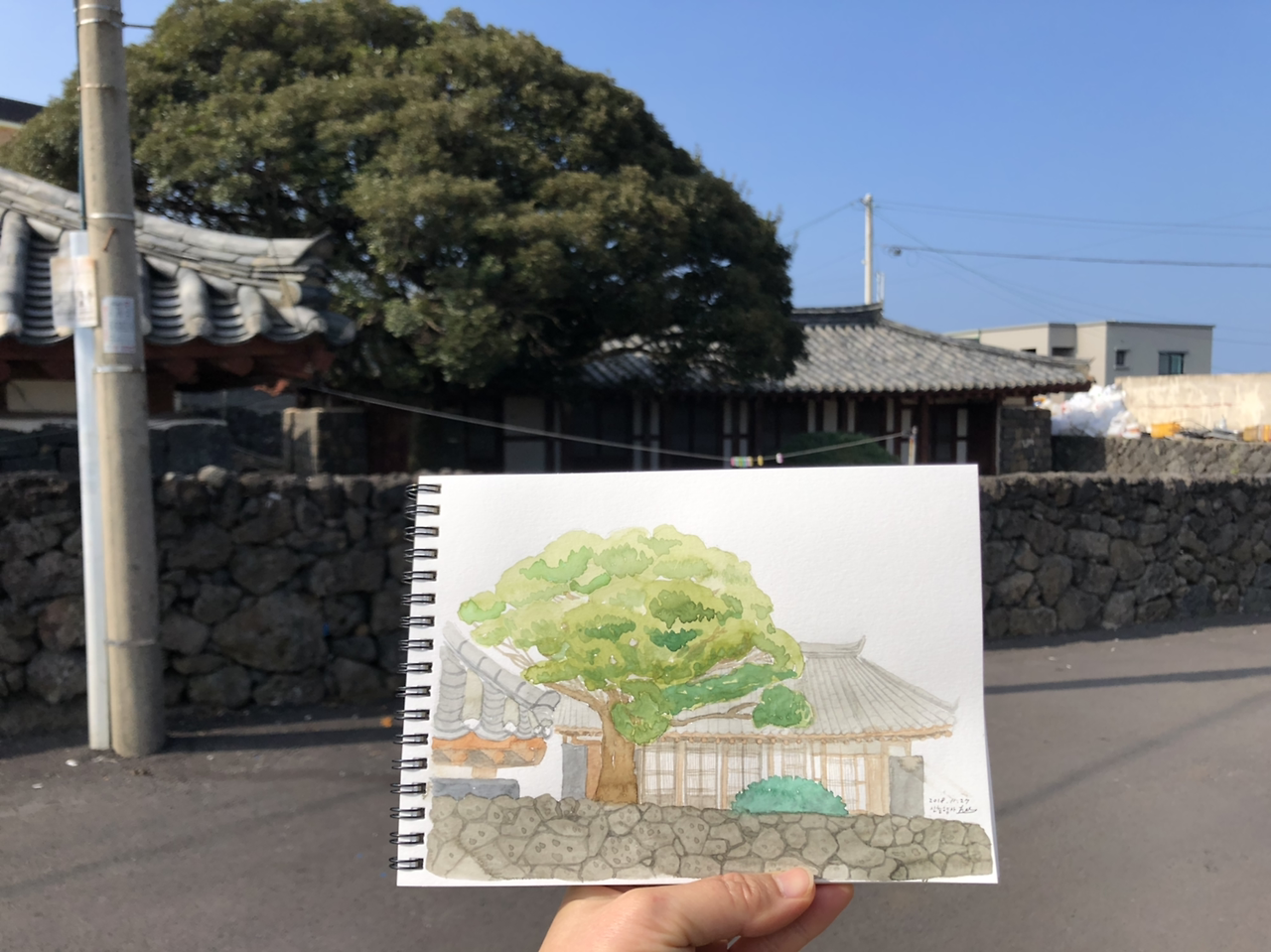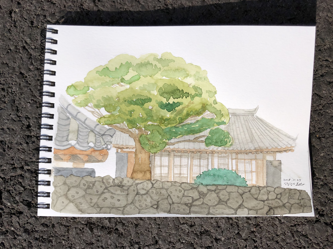 요새 제주 돌담에 꽂혀서 마지막에 돌담 파는데 20분도 더 걸림. 시간은 오래 걸렸어도 돌담은 어찌 그릴지 감이 잡히기 시작한다. 히히