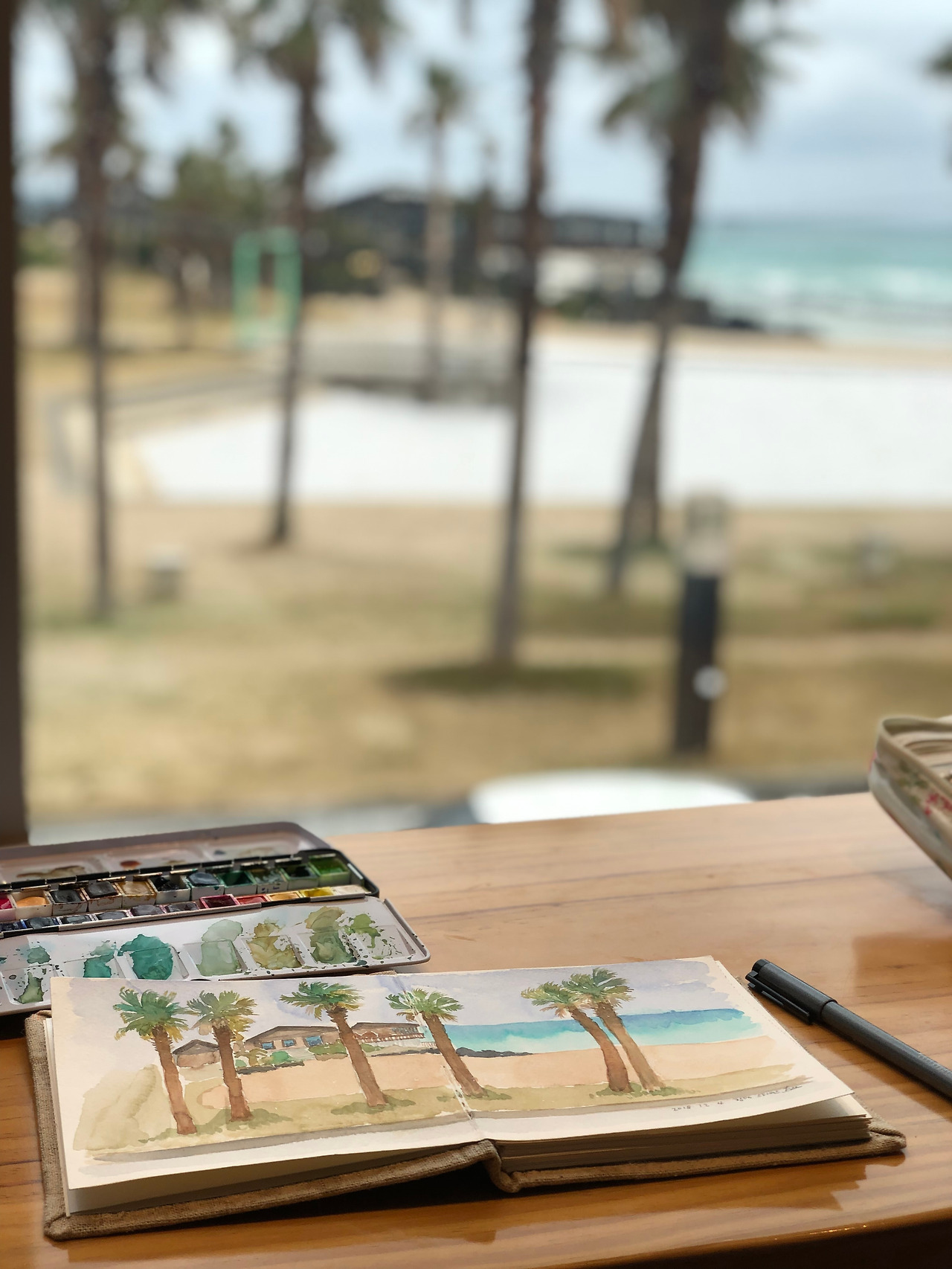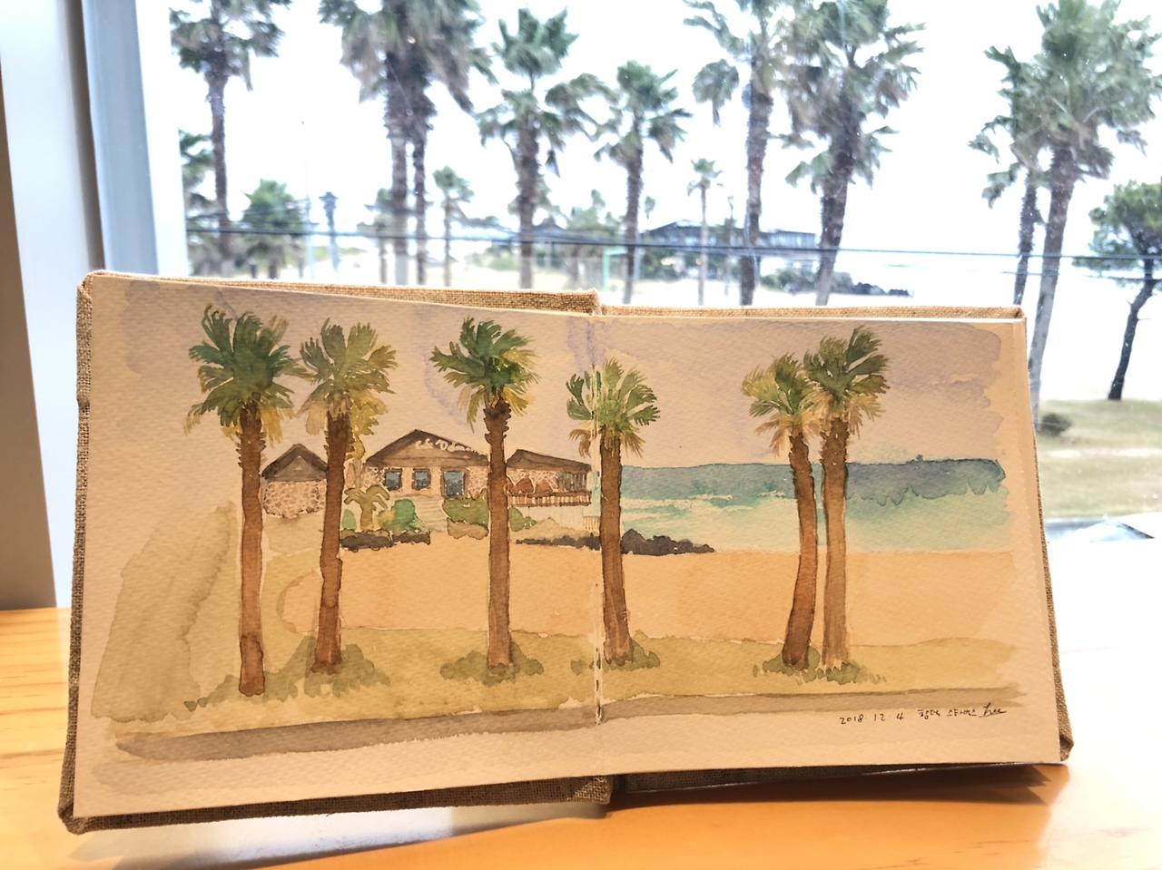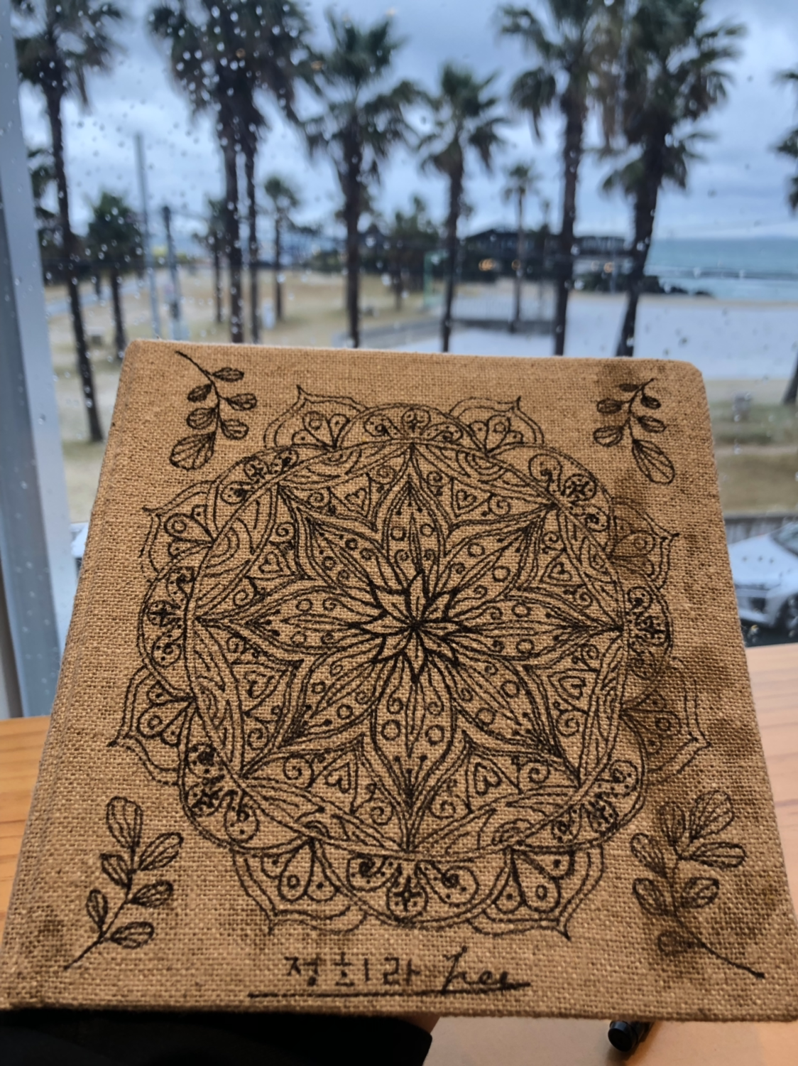 함덕 스타벅스 2층 창가에 앉아 표지 장식하기.