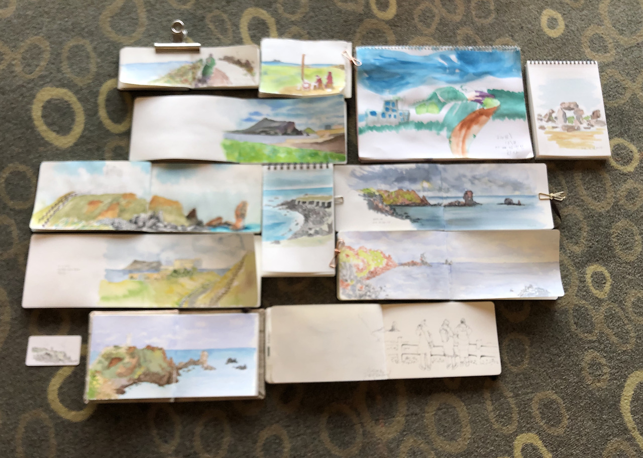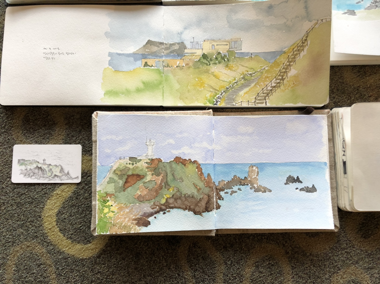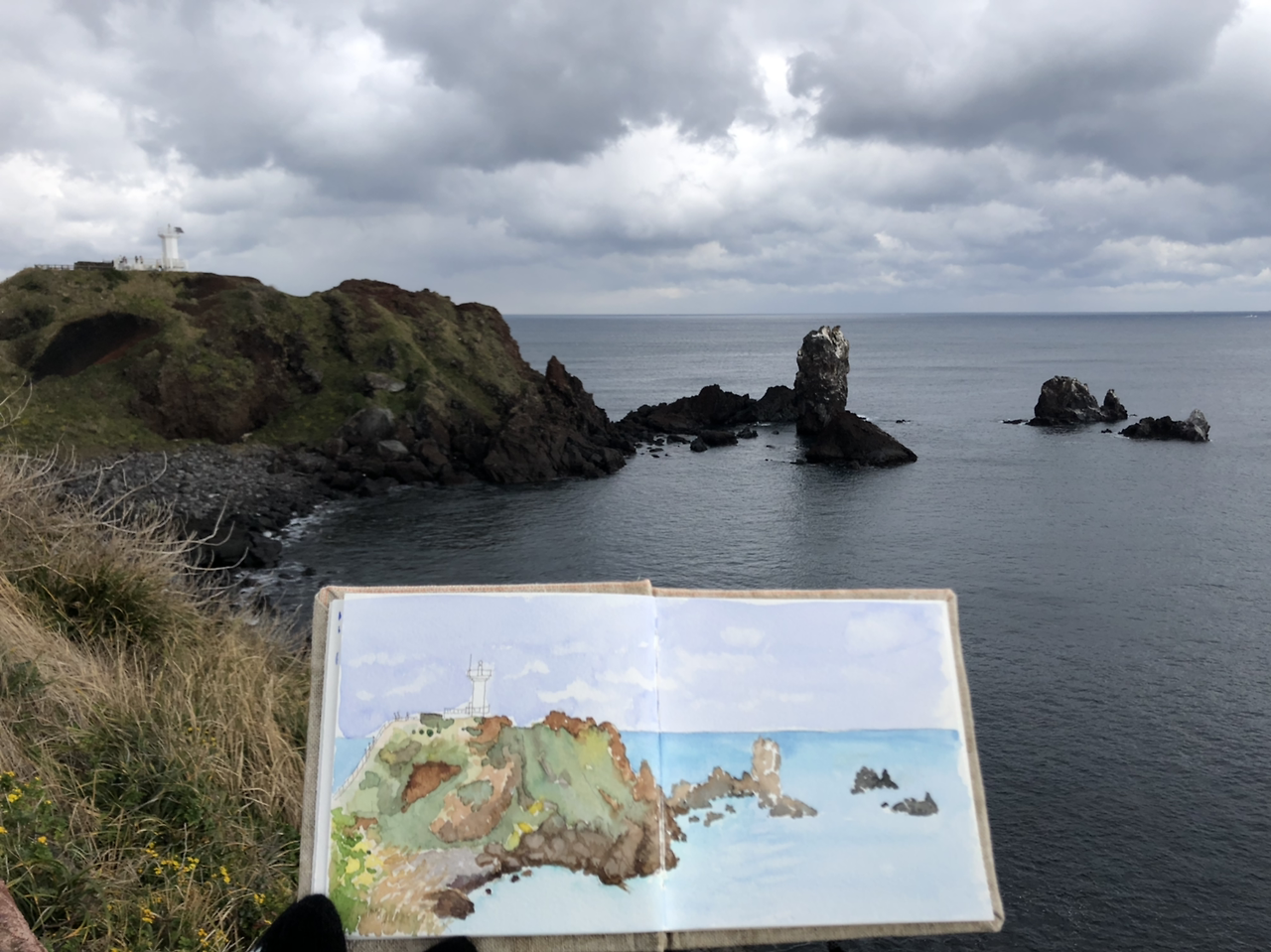 섭지코지를 돌며 각자 그릴 곳을 찾는다.