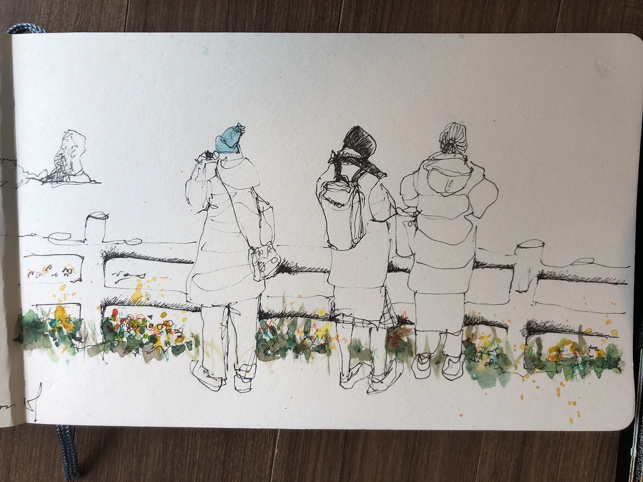 스케치 하는 한 시간 동안 다행스럽게도 비가 멈추고 해가 나오기도 한다.